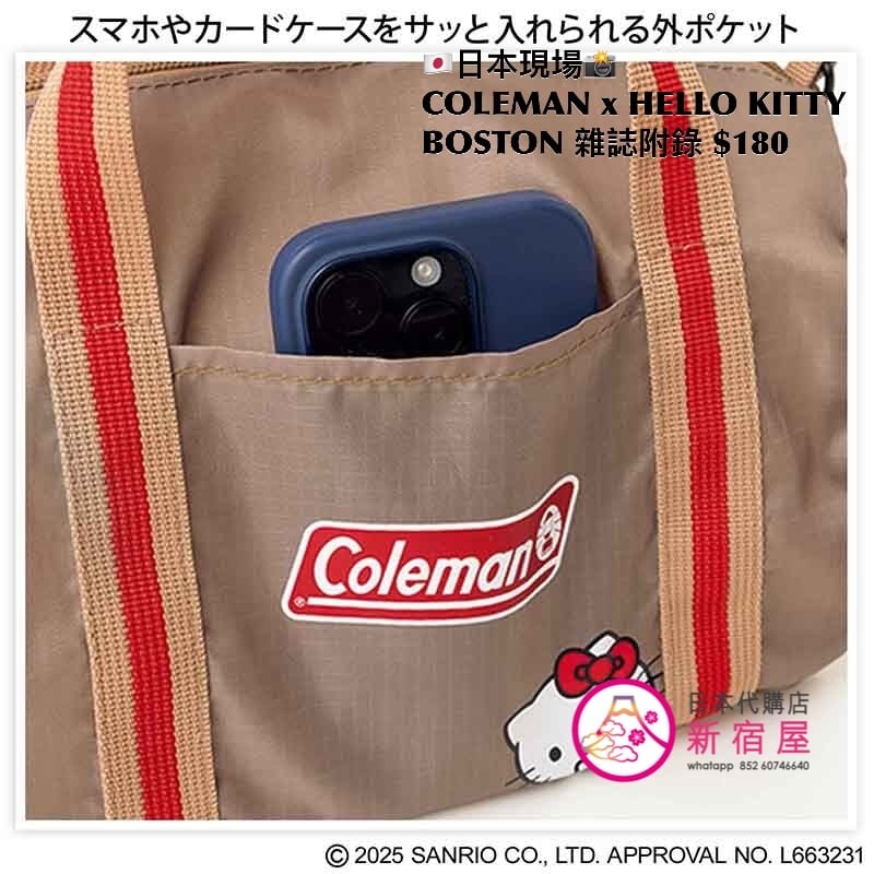 預約商品,預期 11月中旬到港 👜COLEMAN x HELLO KITTY BOSTON 雜誌附錄 24.5x18x18cm,BEIGE,$180