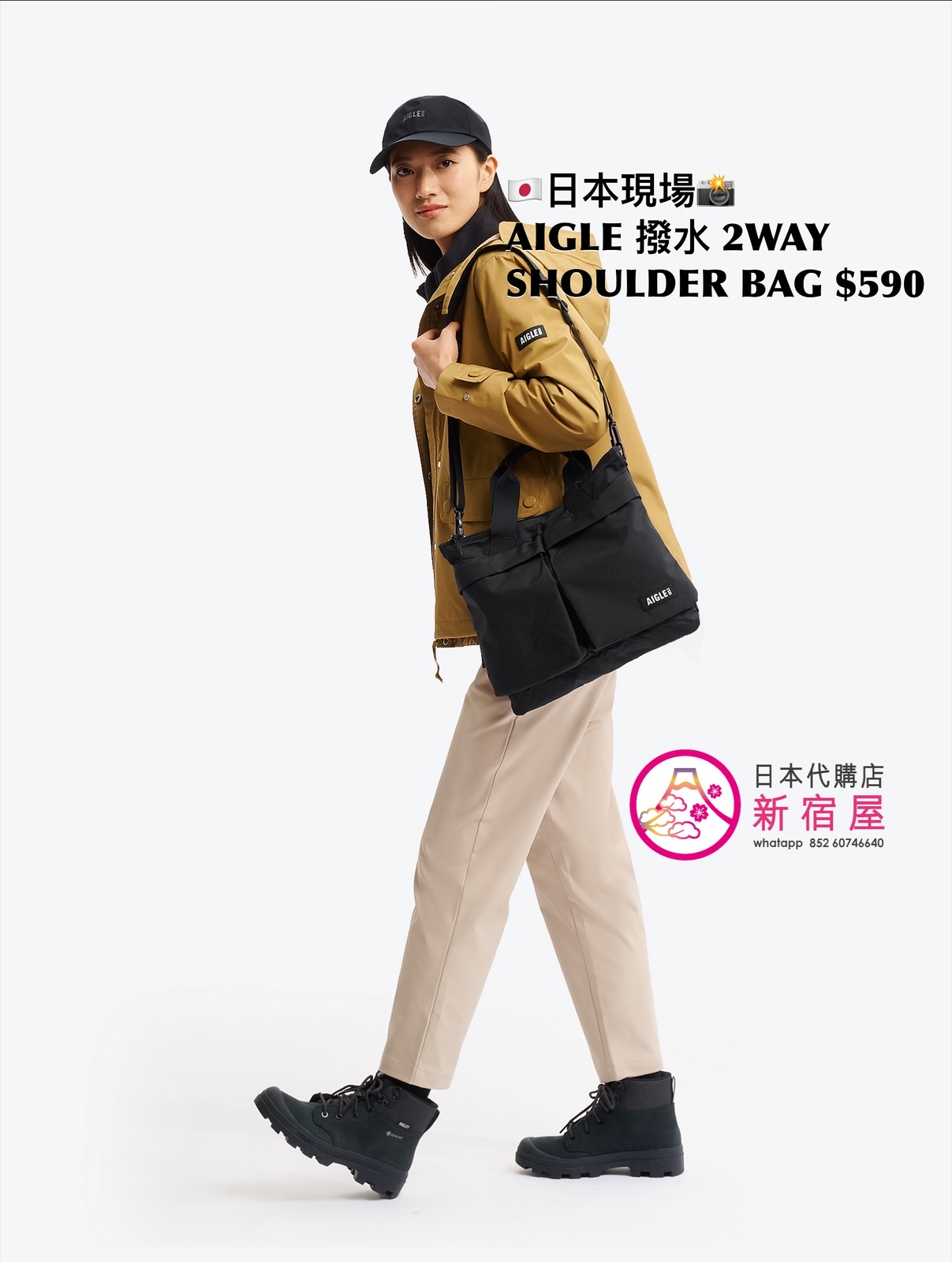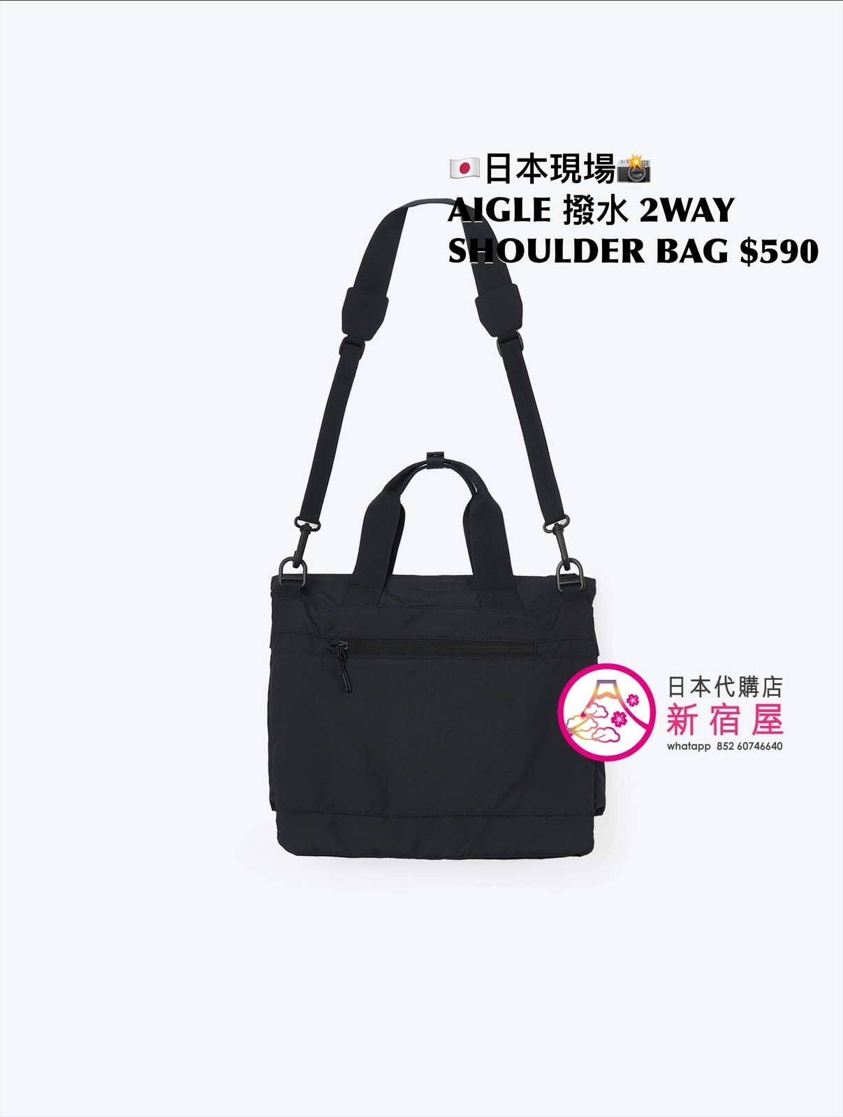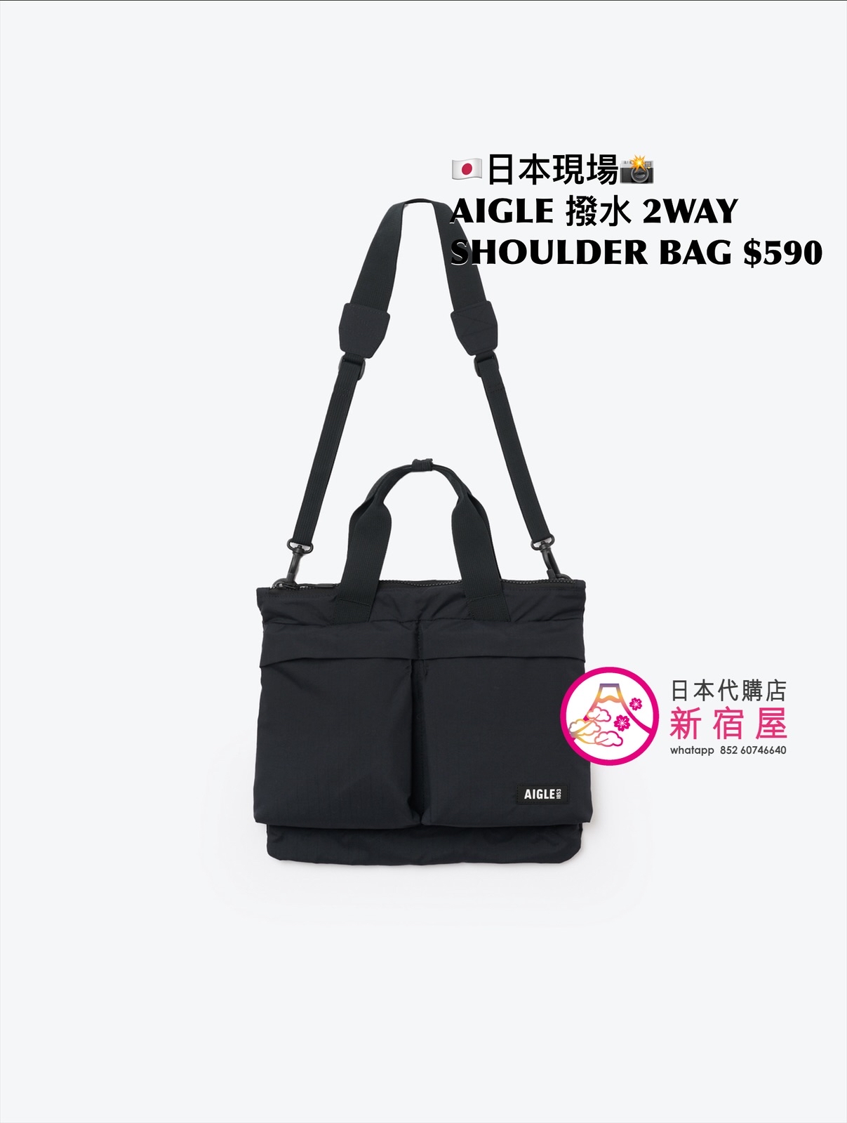 AIGLE 撥水 2WAY SHOULDER BAG 35x30cm,BLACK,$590