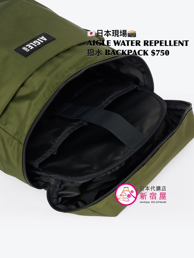 AIGLE WATER REPELLENT 撥水 BACKPACK 27x18x47.5cm,BLACK/ AVOCADO,$750