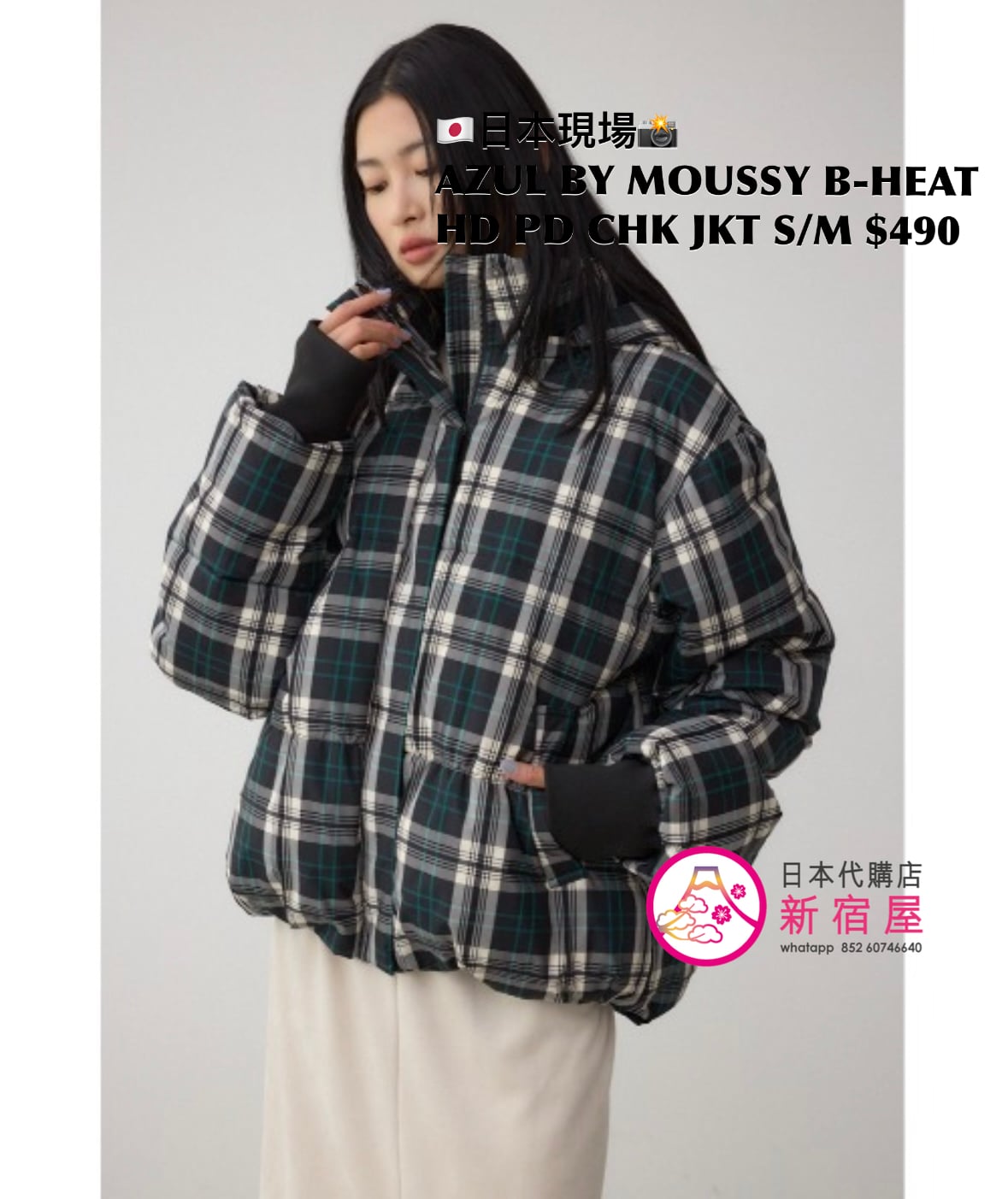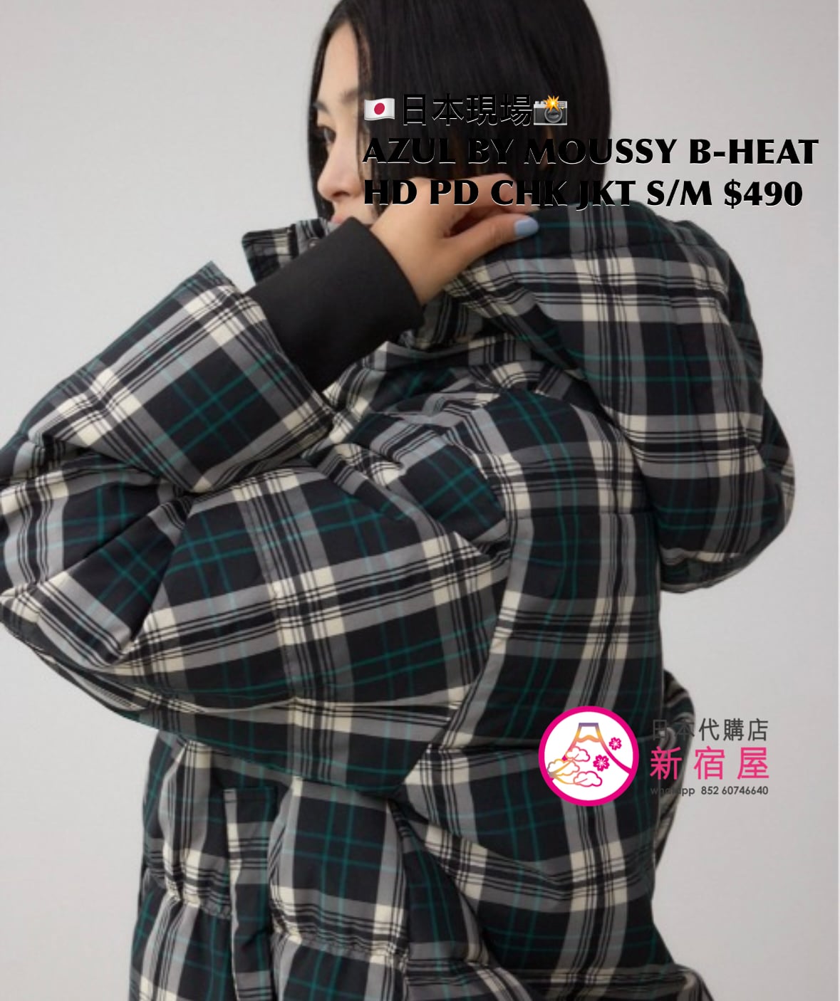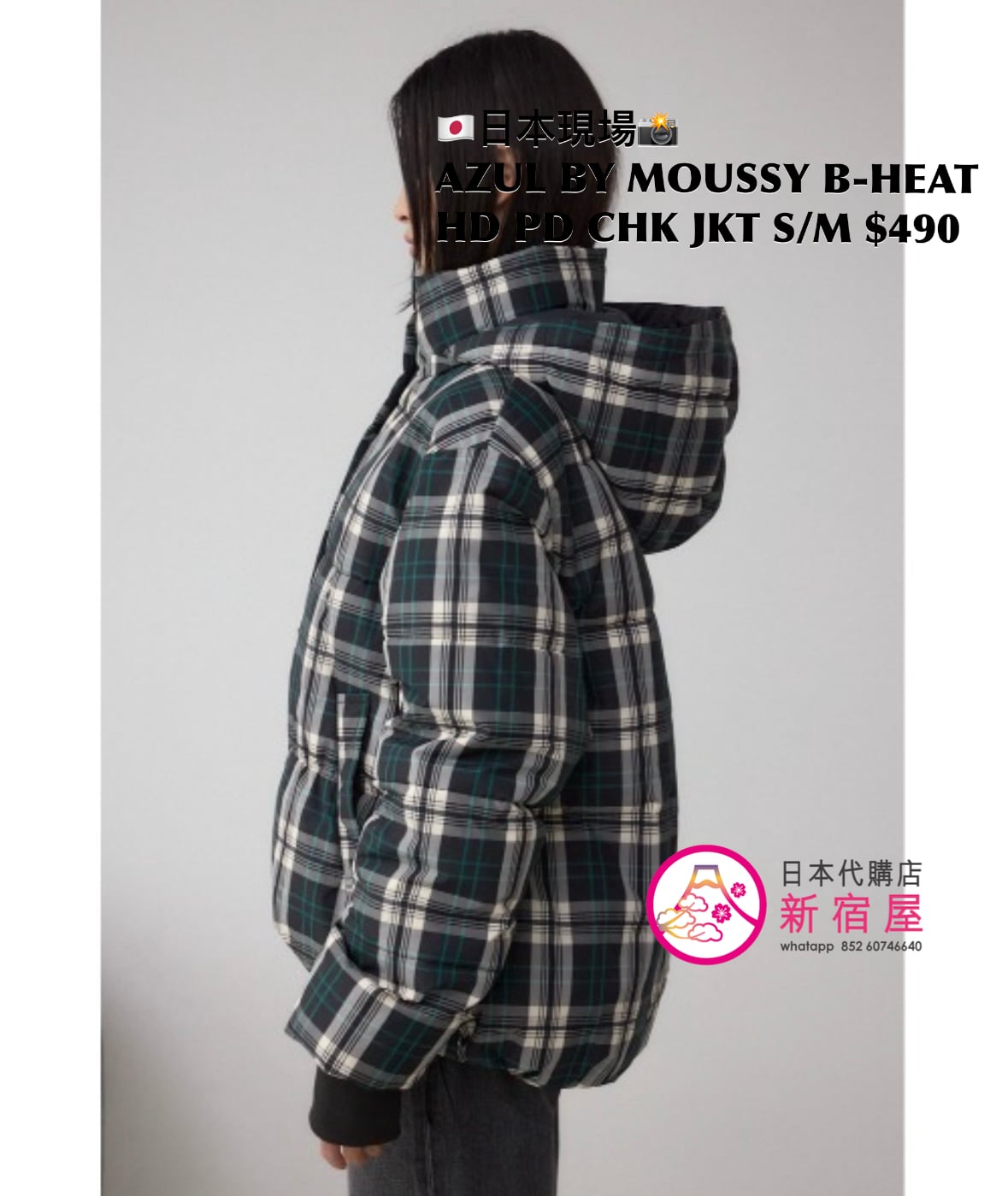 AZUL BY MOUSSY B-HEAT HOODED PADDED CHECK JACKET SIZE S/M,BLACK CHECK,$490 👚參考尺寸 SIZE S: 身幅 60 總丈 62/70cm SIZE M: 身幅 62 總丈 65/73cm
