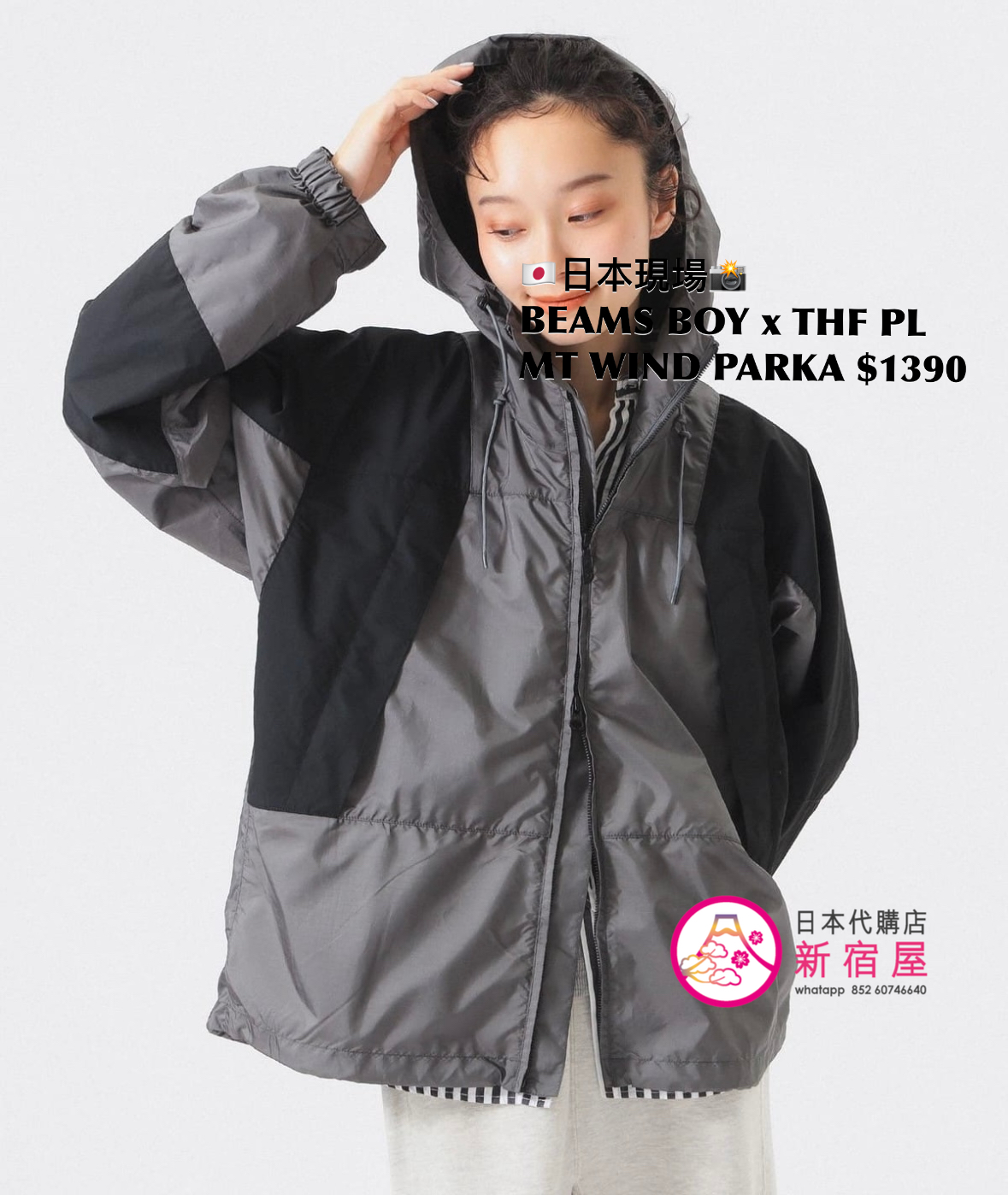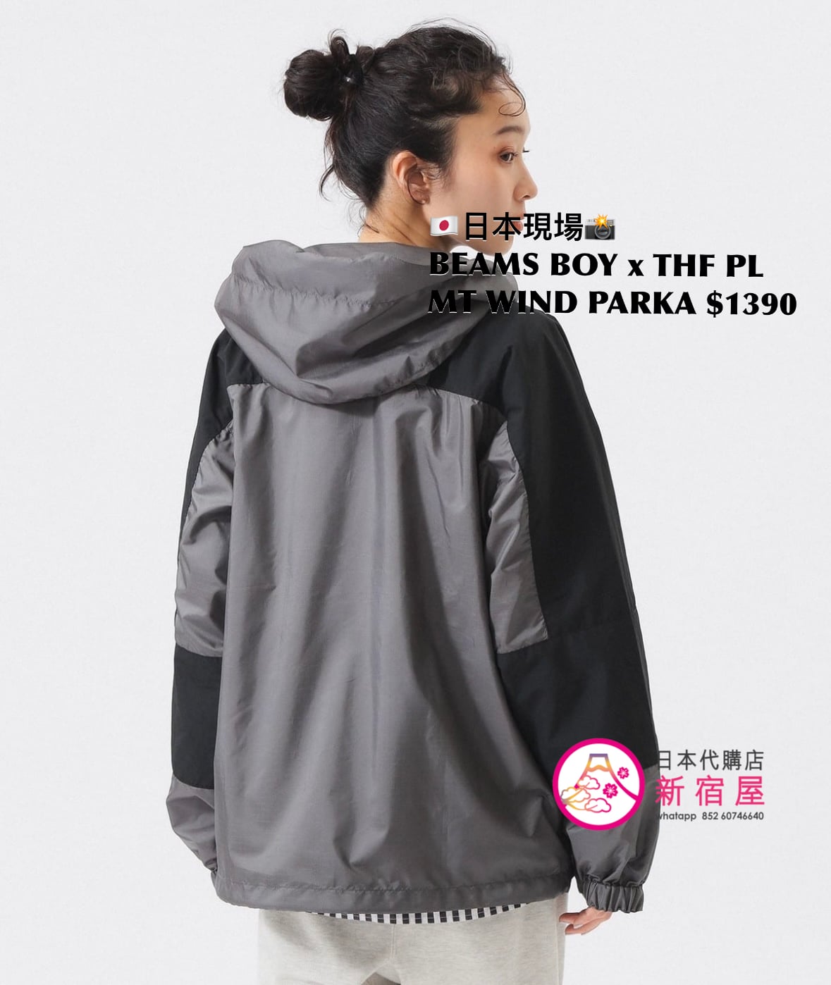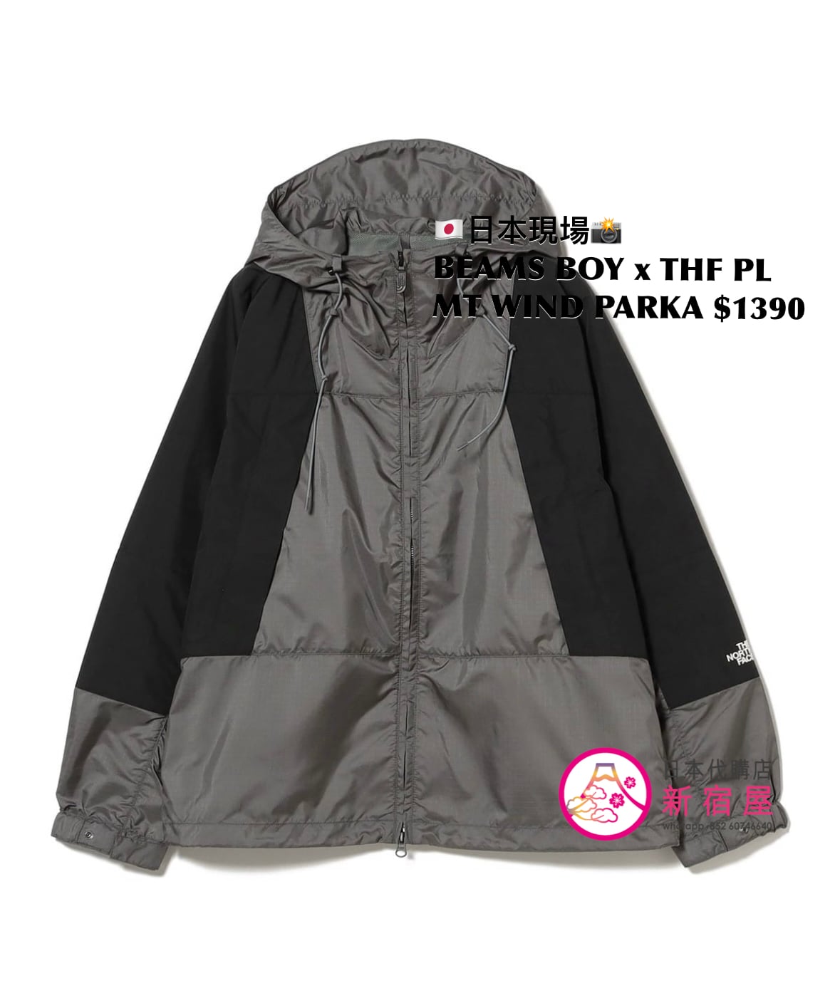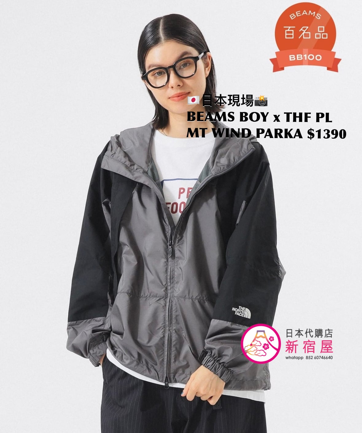 BEAMS BOY x THE NORTH FACE PURPLE LABEL MOUNTAIN WIND PARKA WS,GRAY/ NAVY,$1390 👚參考尺寸 WS: 身幅 60 著丈 64cm