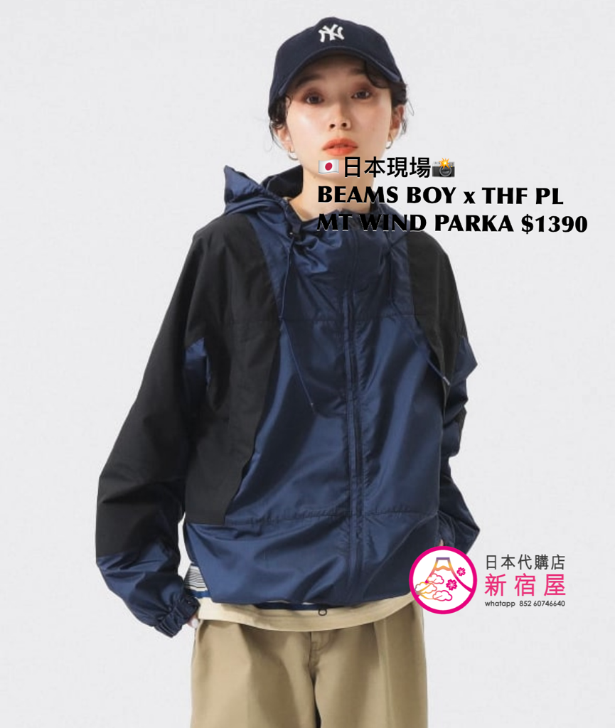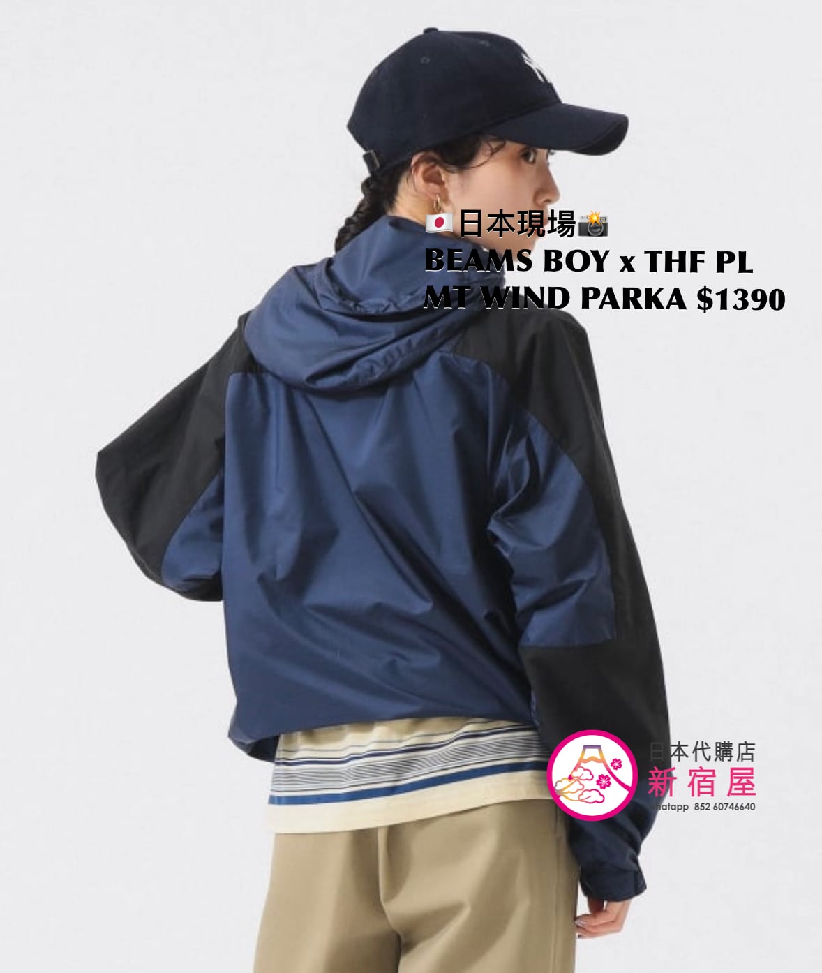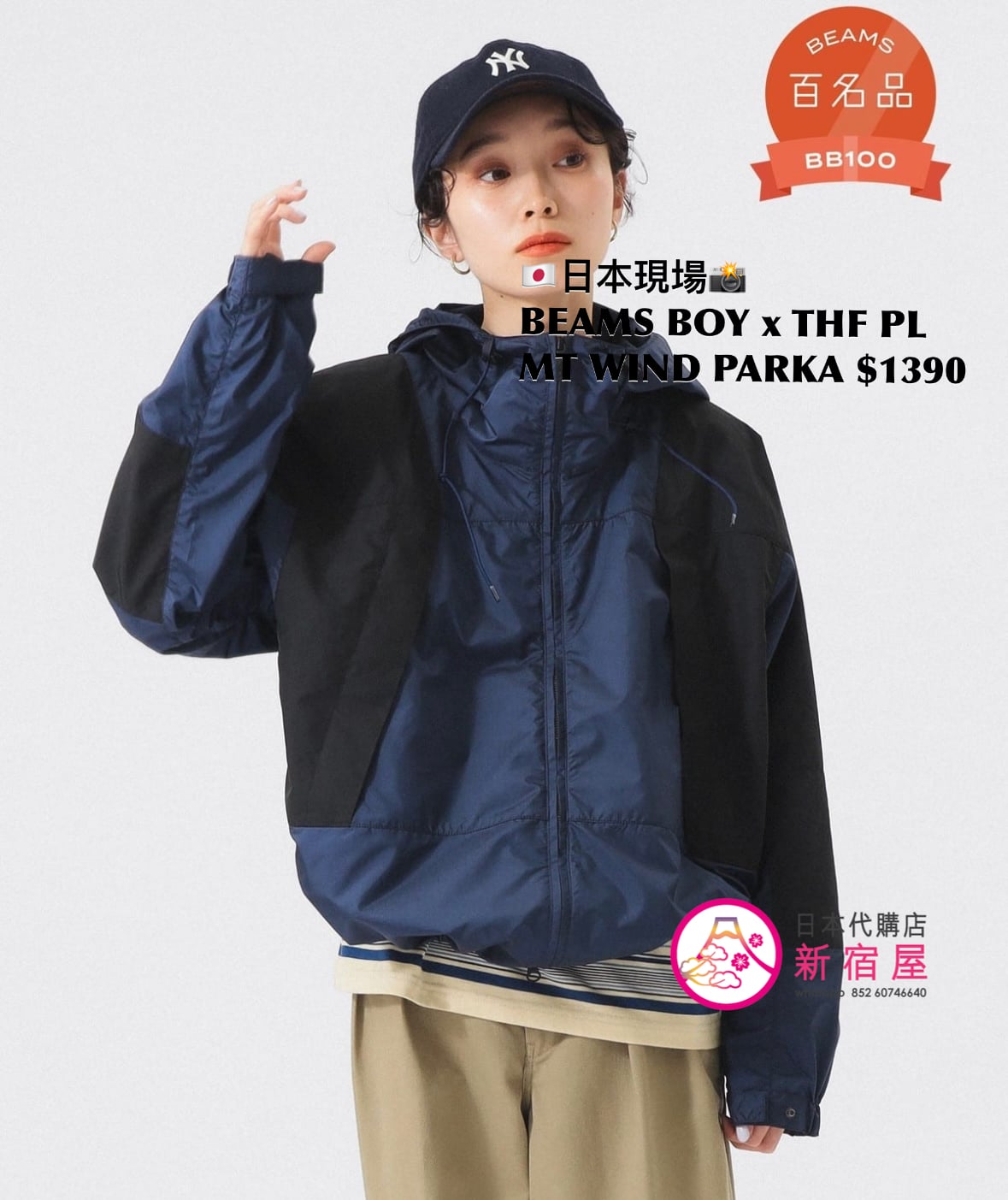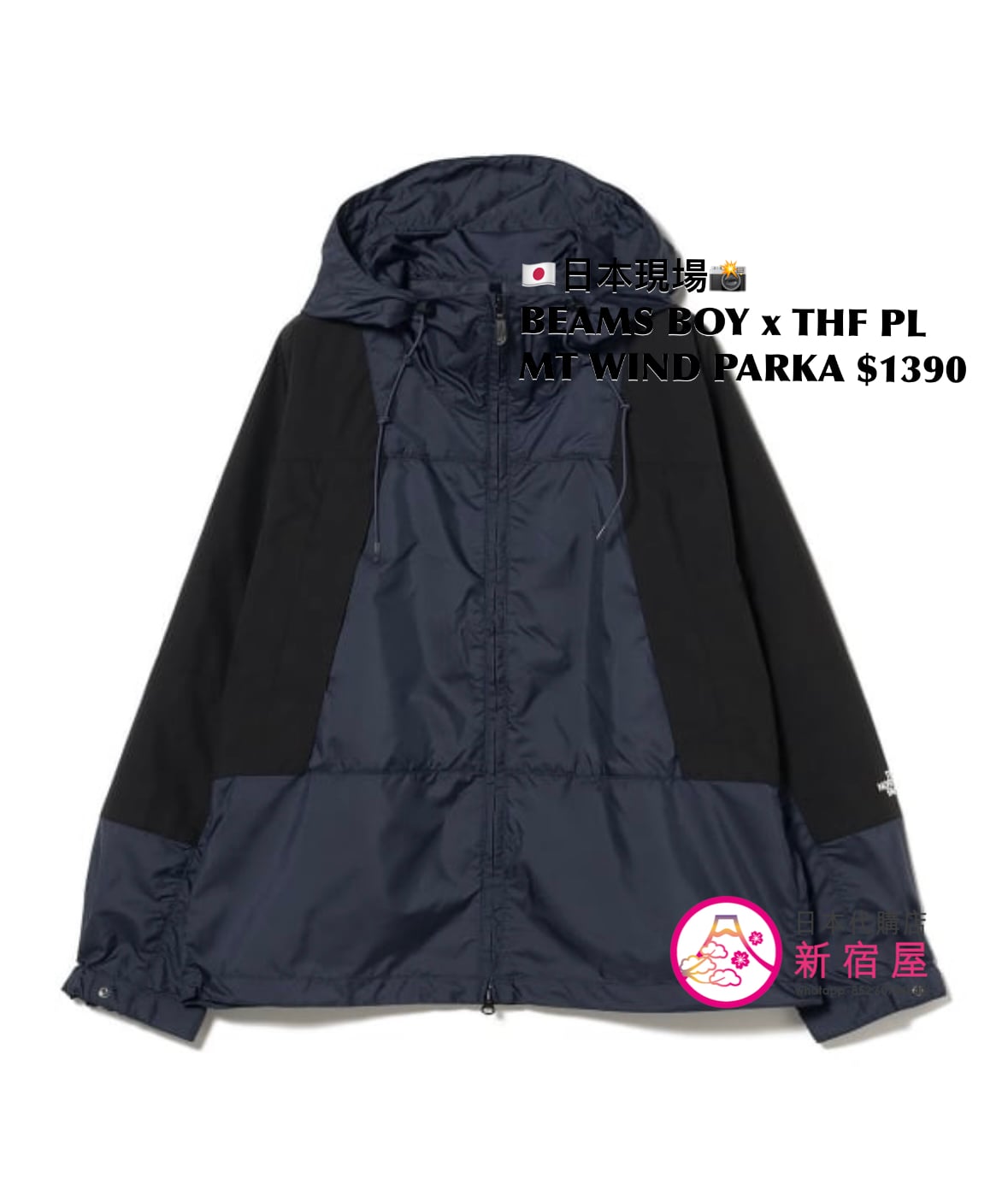 BEAMS BOY x THE NORTH FACE PURPLE LABEL MOUNTAIN WIND PARKA WS,GRAY/ NAVY,$1390 👚參考尺寸 WS: 身幅 60 著丈 64cm