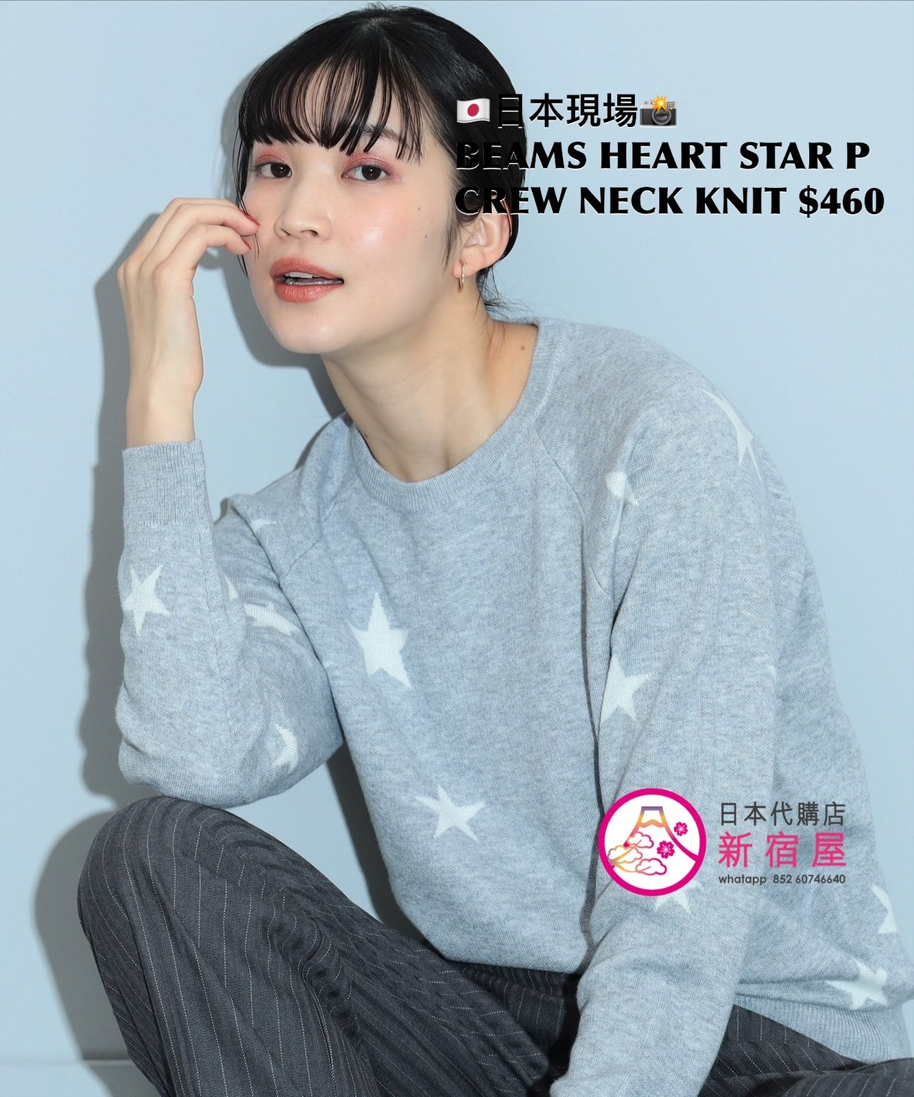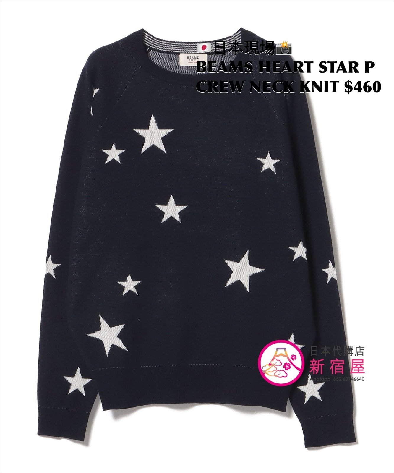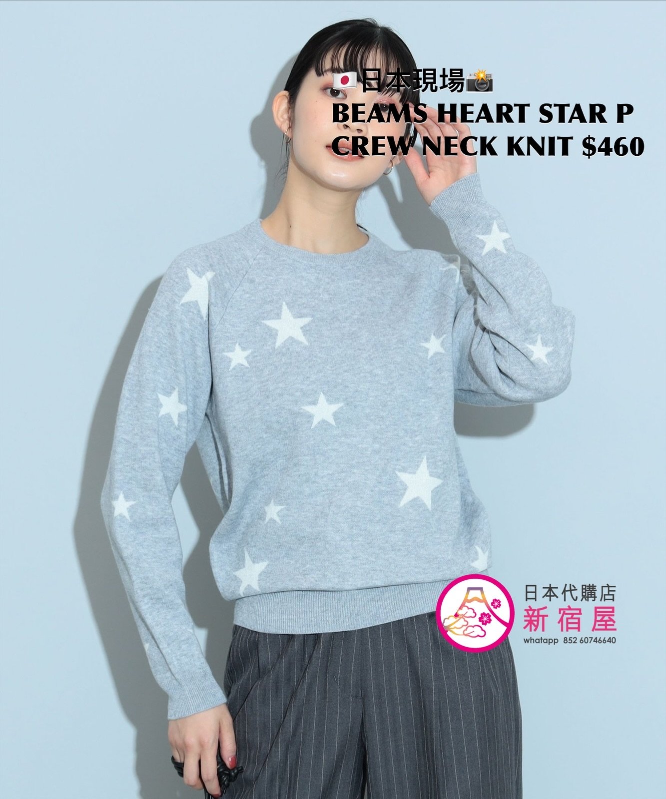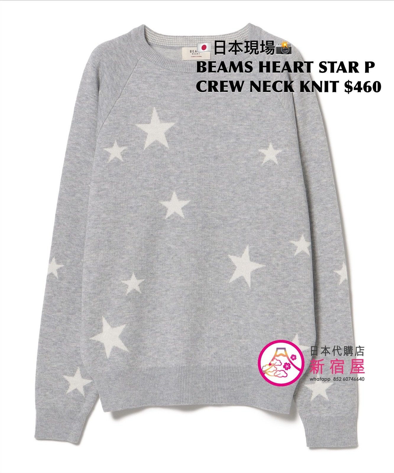 BEAMS HEART STAR PRINT CREW NECK KNIT FREE SIZE,LIGHT GRAY/ NAVY,$460 👚參考尺寸 FREE SIZE: 身幅 49 著丈 56.5cm