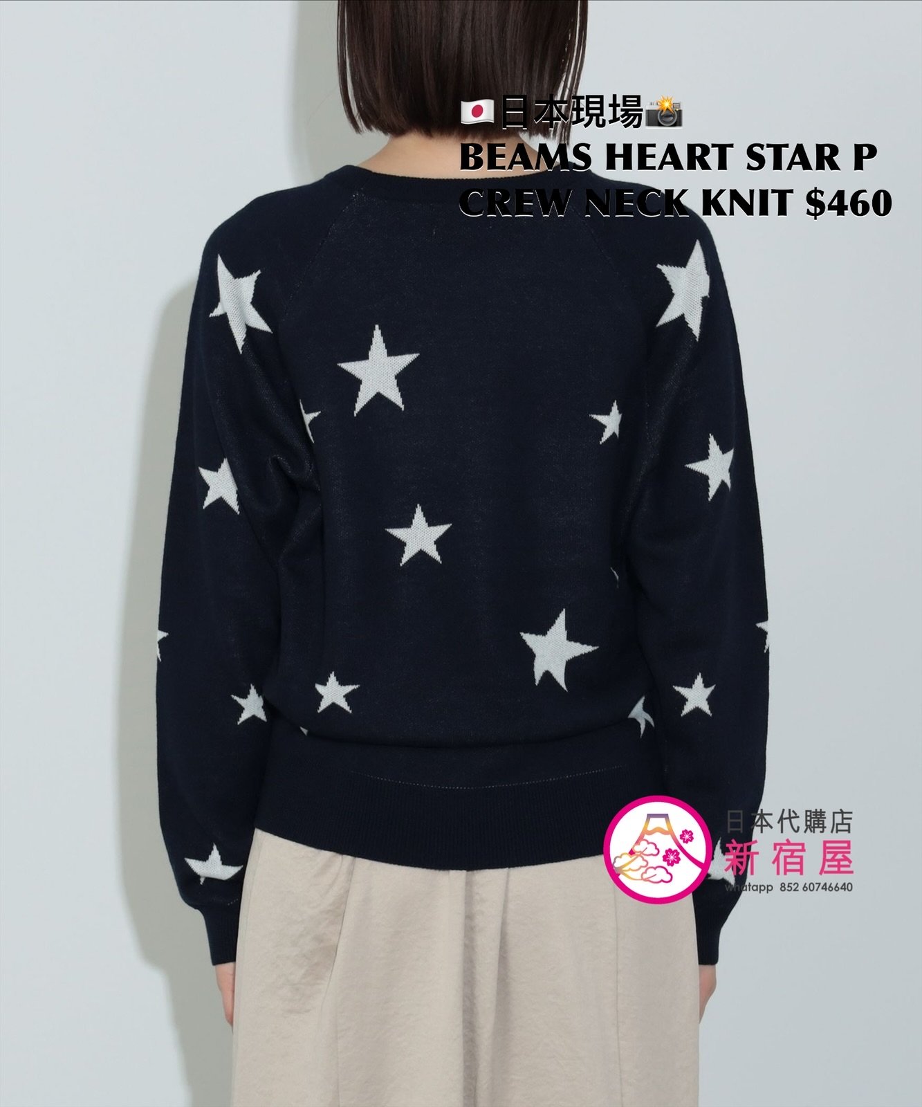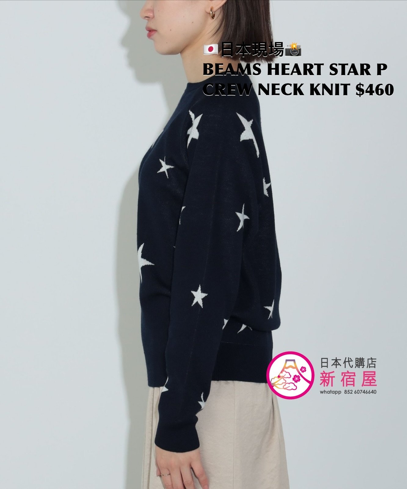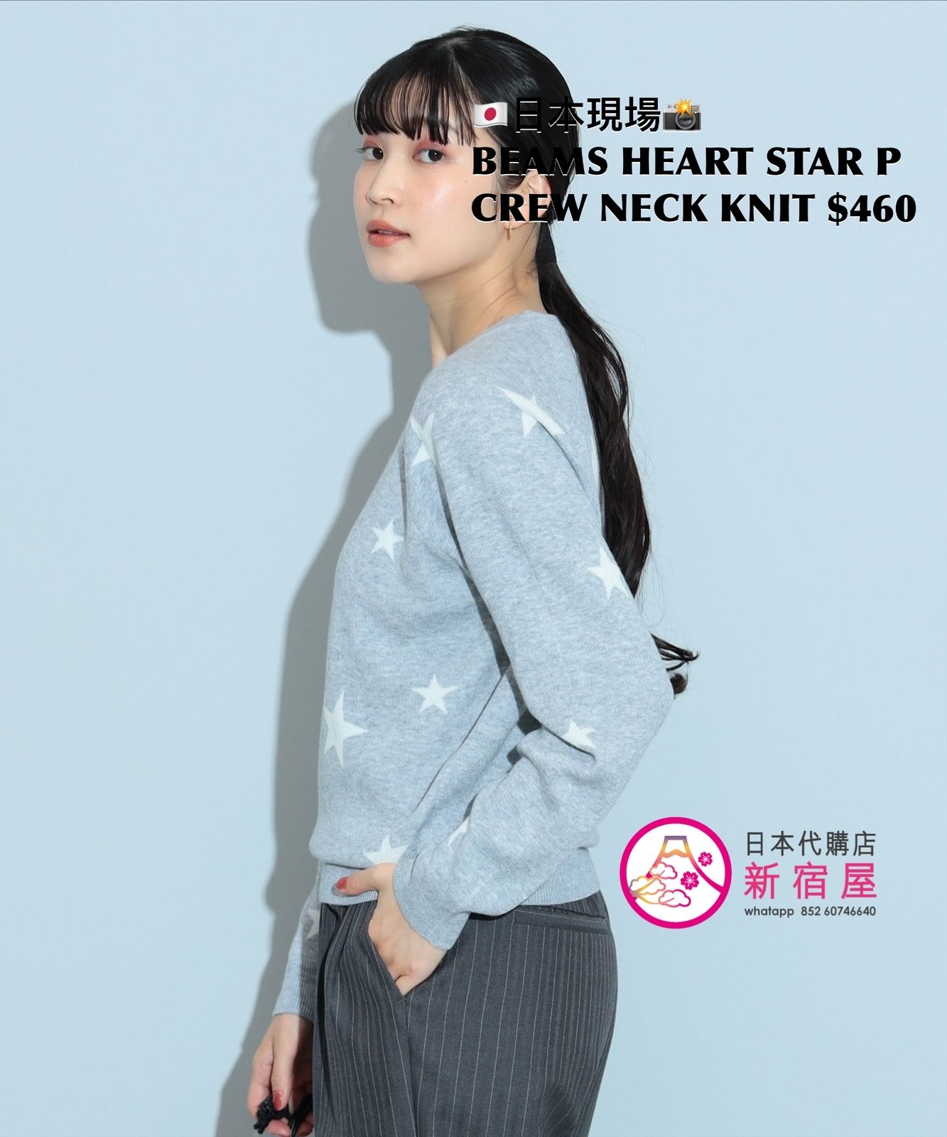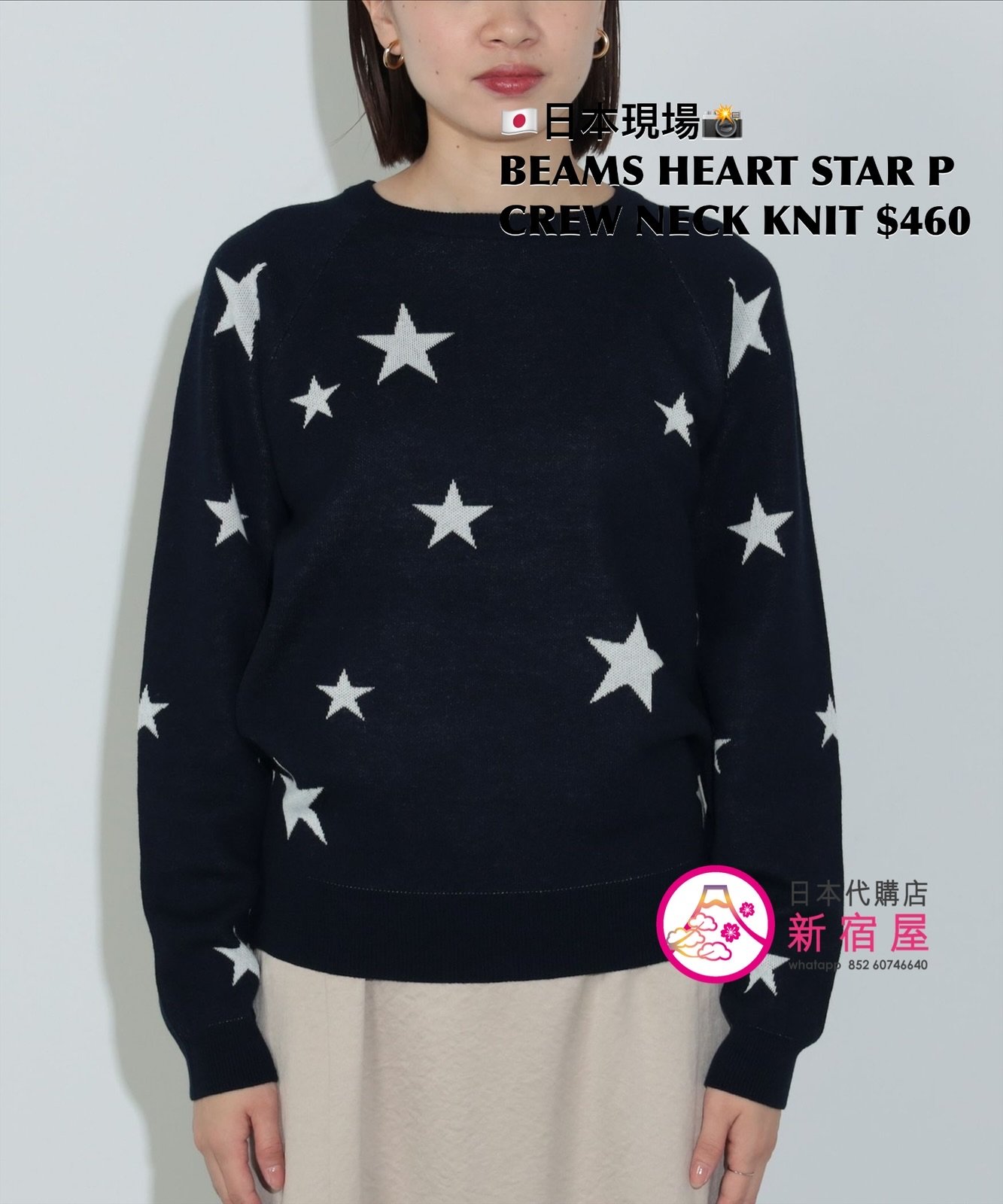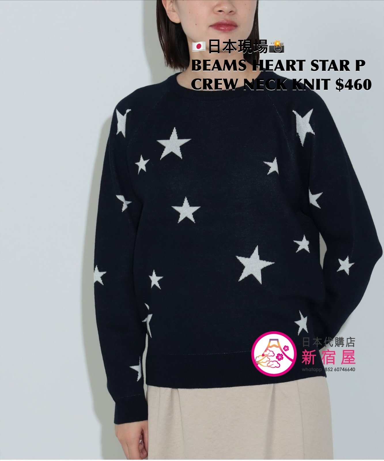 BEAMS HEART STAR PRINT CREW NECK KNIT FREE SIZE,LIGHT GRAY/ NAVY,$460 👚參考尺寸 FREE SIZE: 身幅 49 著丈 56.5cm