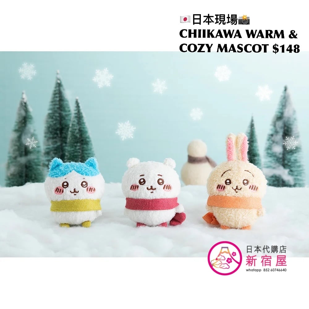 CHIIKAWA WARM AND COZY MASCOT ONE SIZE,CHIIKAWA/ HACHIWARE/ USAGI,$148;SET OF 3,$428