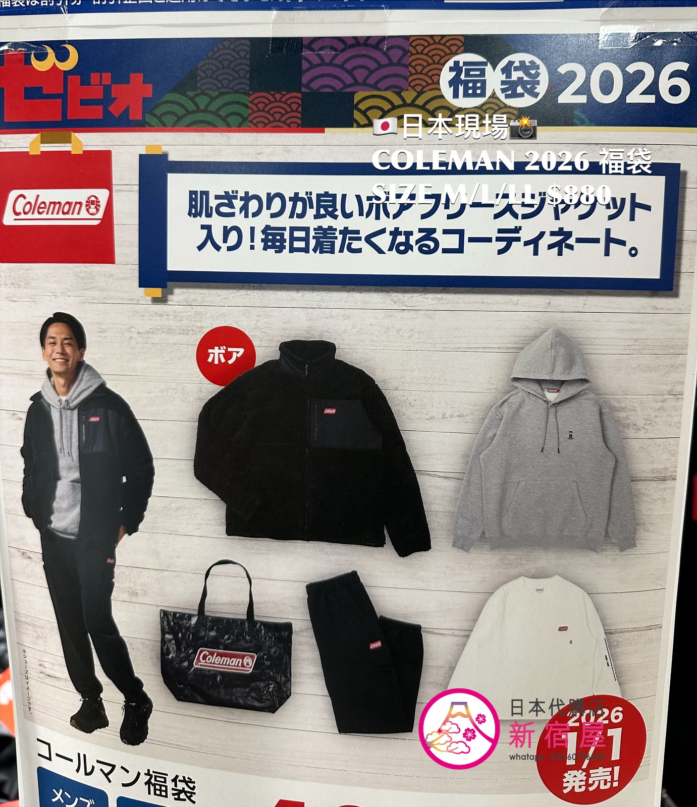 🛍️COLEMAN 福袋 HAPPY BAG 2026 商品如圖,JACKET/ HOODED SWEATSHIRT,PANTS,SWEATSHIRT,TOTE BAG SIZE M/L/LL,$880