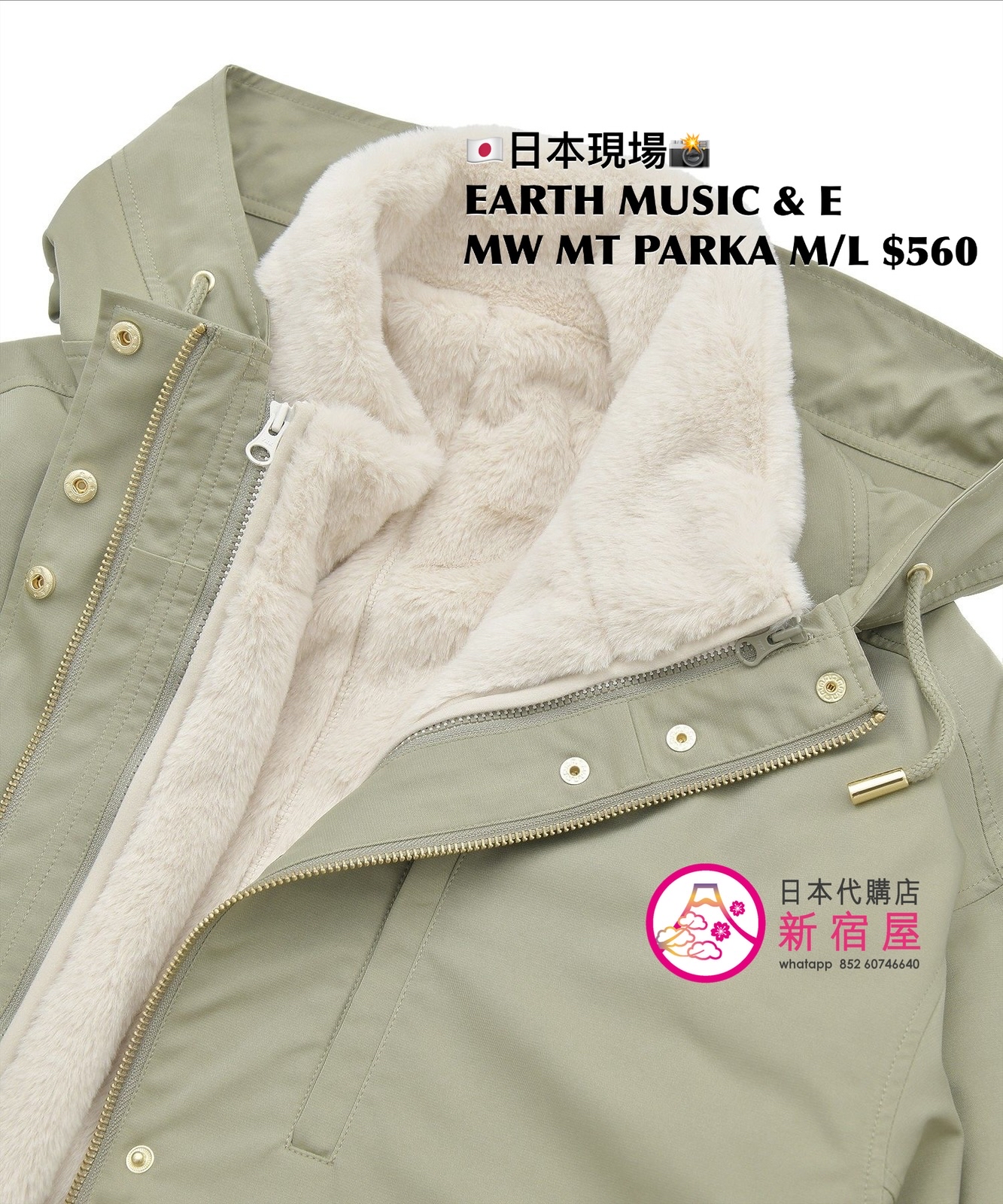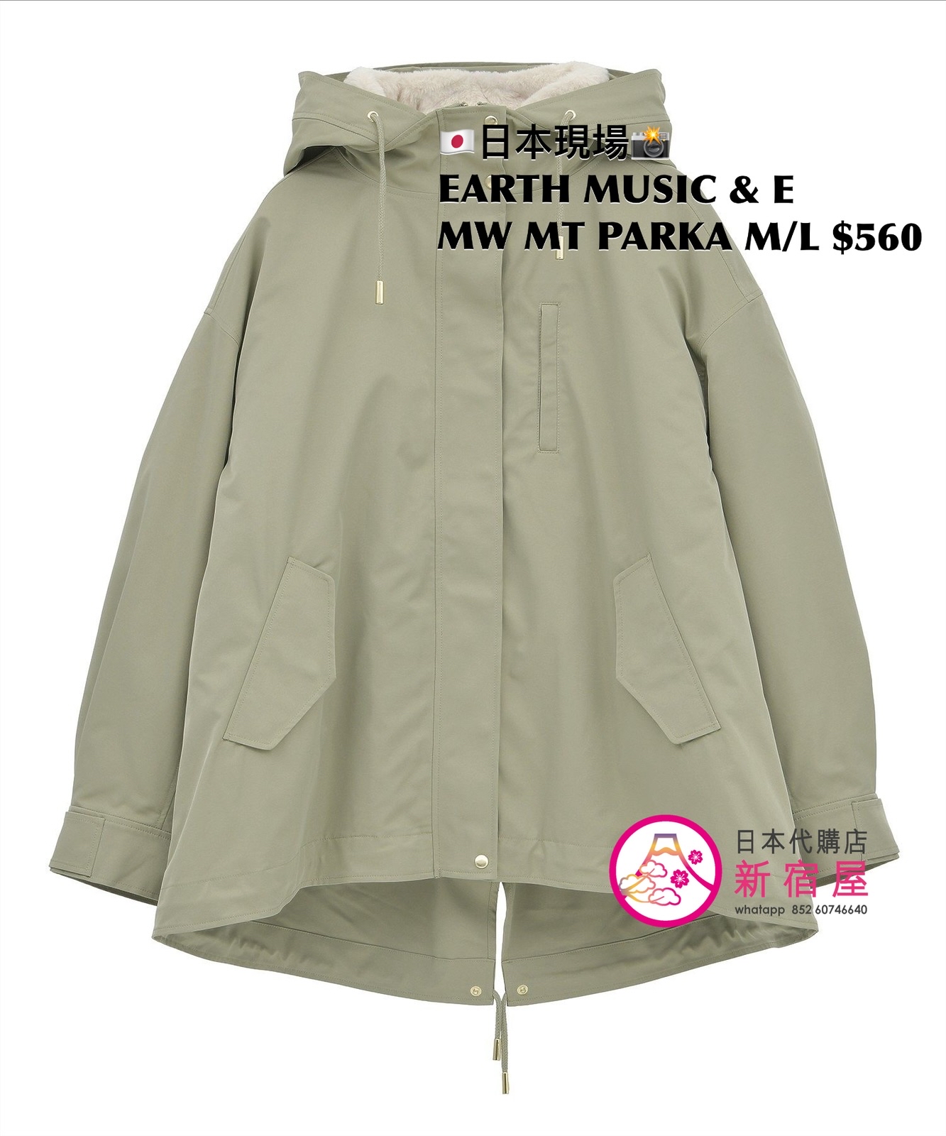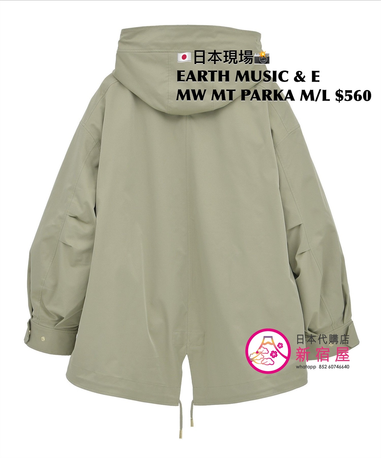 EARTH MUSIC & ECOLOGY MULTI-WAY MOUNTAIN PARKA SIZE M/L,KHAKI,$560 👚參考尺寸 SIZE M: 身幅 63 著丈 74.5cm SIZE L: 身幅 65 著丈 76.5cm