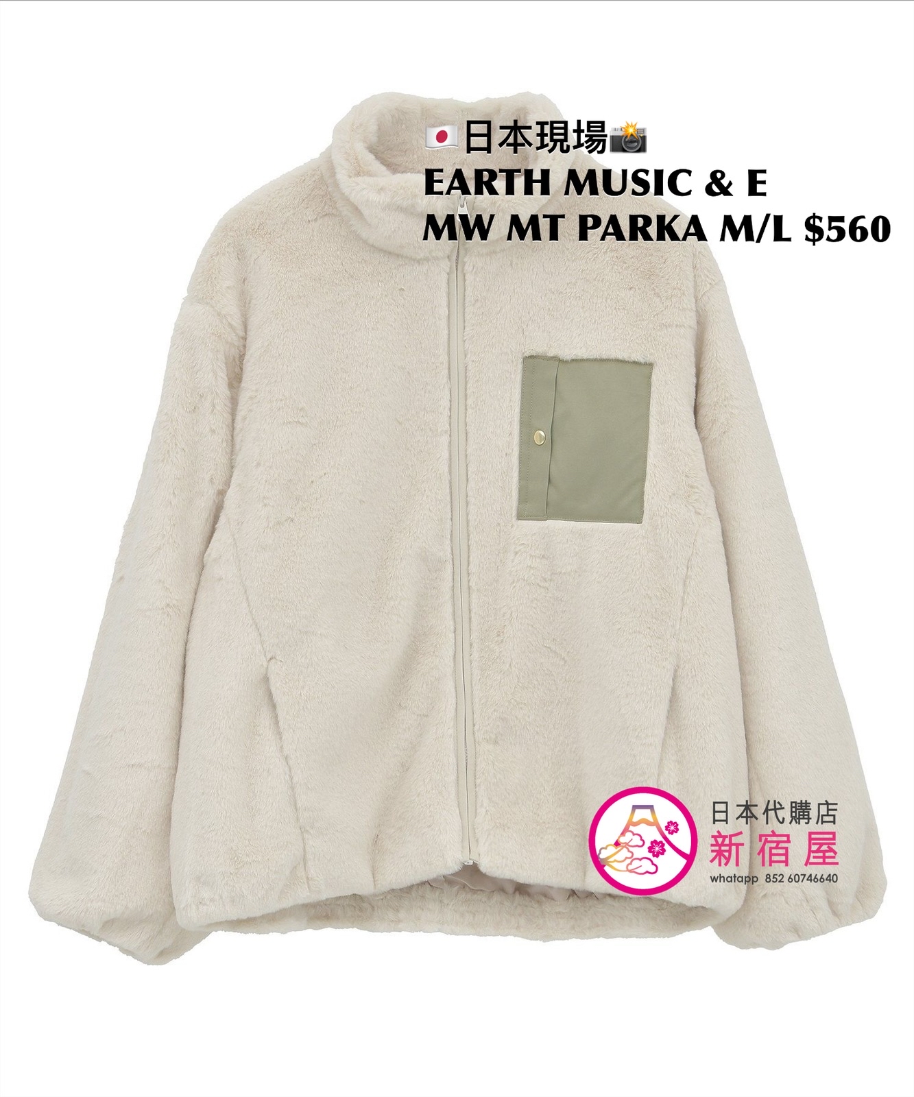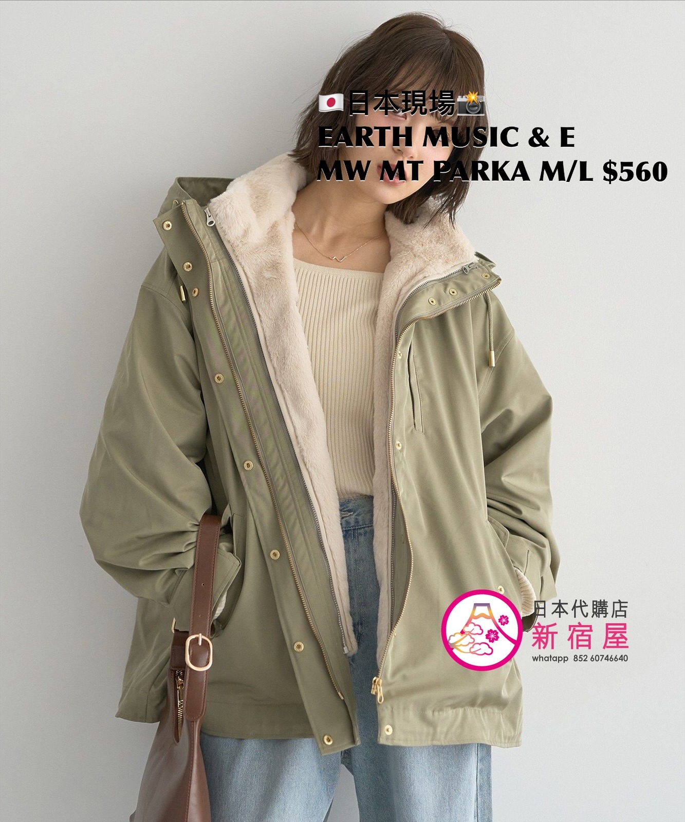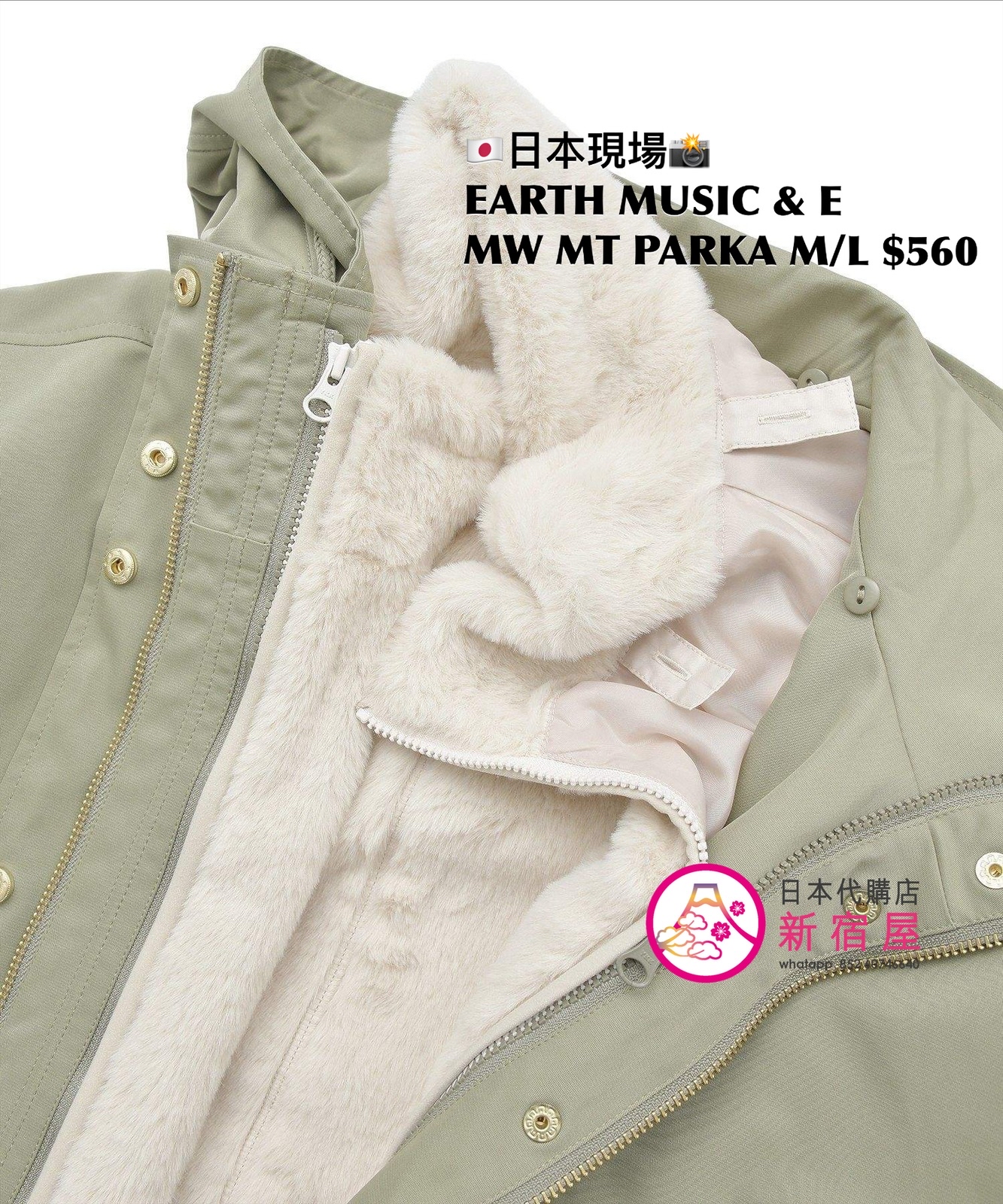 EARTH MUSIC & ECOLOGY MULTI-WAY MOUNTAIN PARKA SIZE M/L,KHAKI,$560 👚參考尺寸 SIZE M: 身幅 63 著丈 74.5cm SIZE L: 身幅 65 著丈 76.5cm