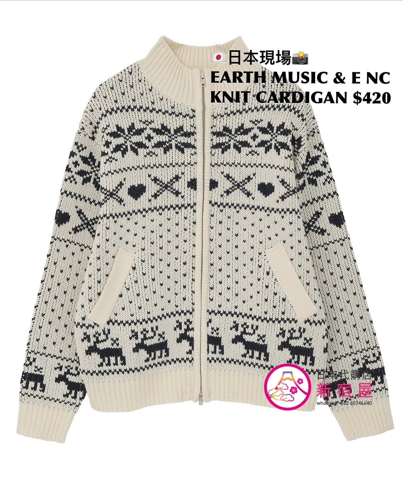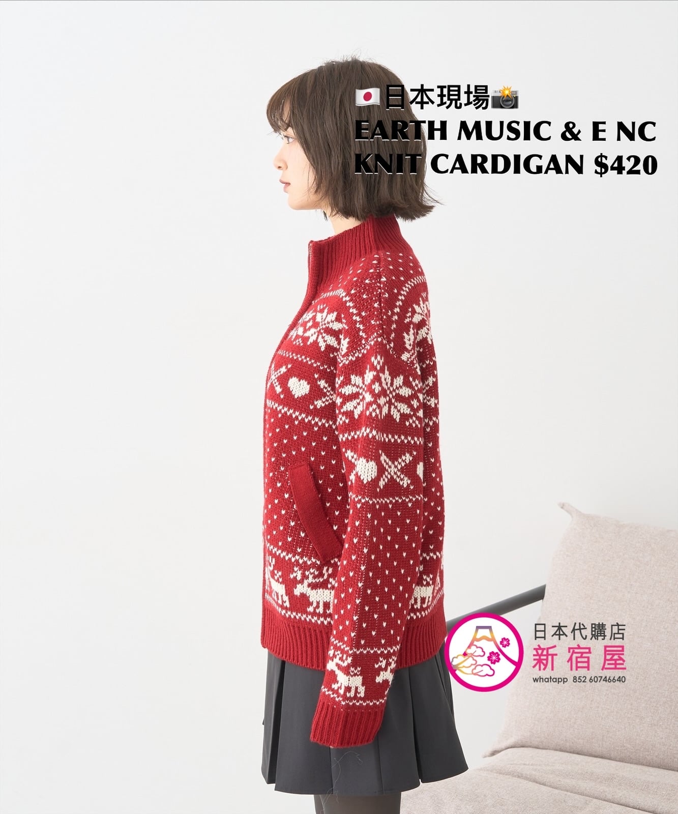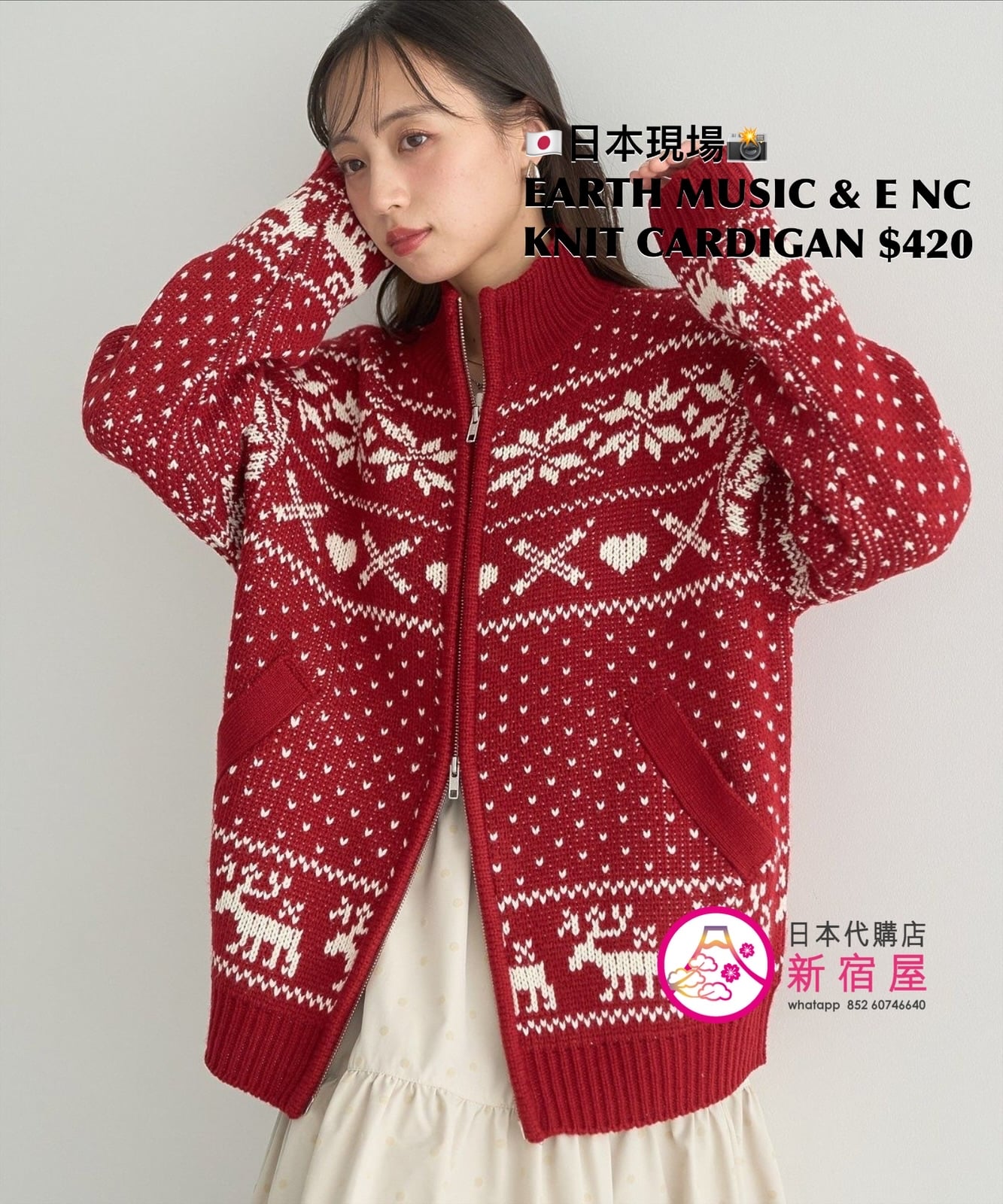 EARTH MUSIC & ECOLOGY NORDIC COWICHAN KNIT CARDIGAN FREE SIZE,IVORY/ RED,$420 👚參考尺寸 FREE SIZE: 身幅 55 著丈 62cm