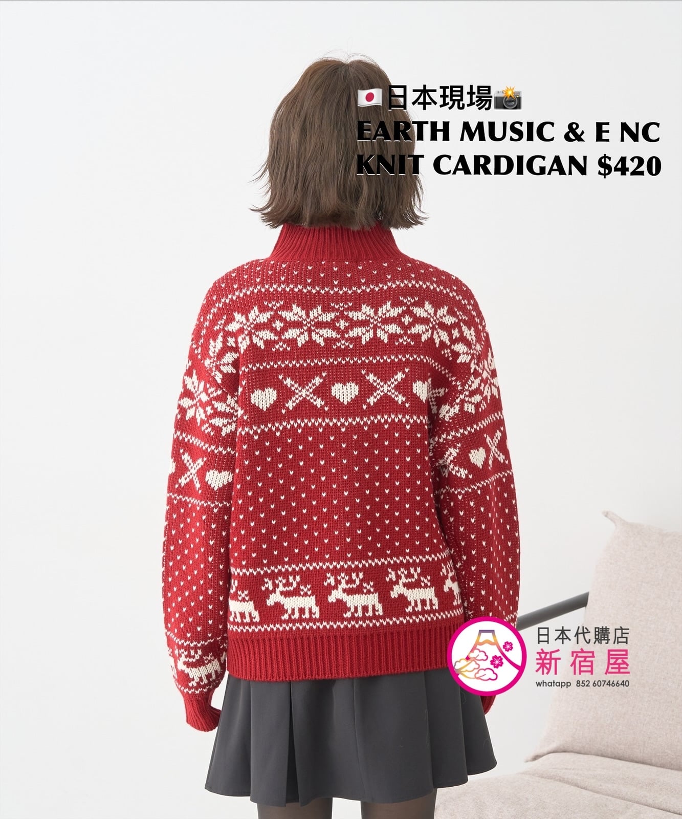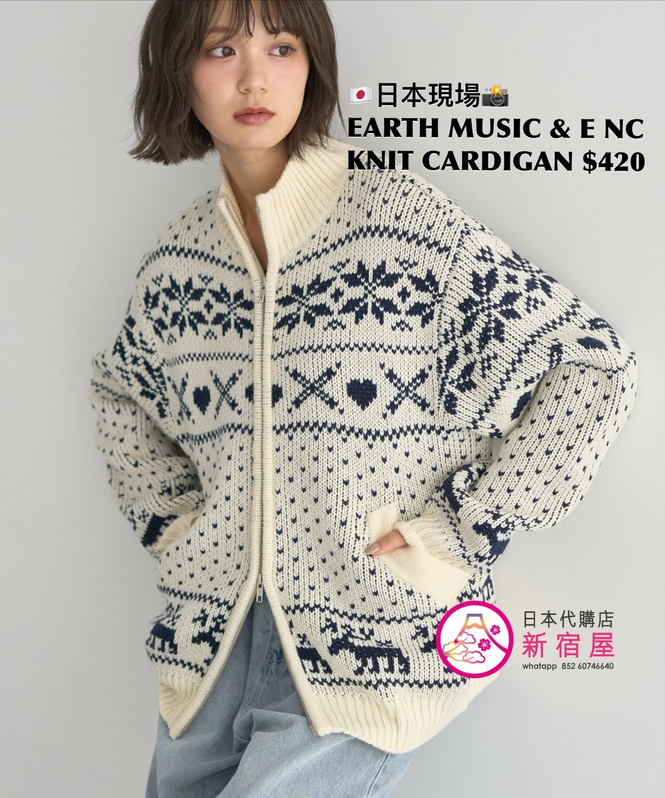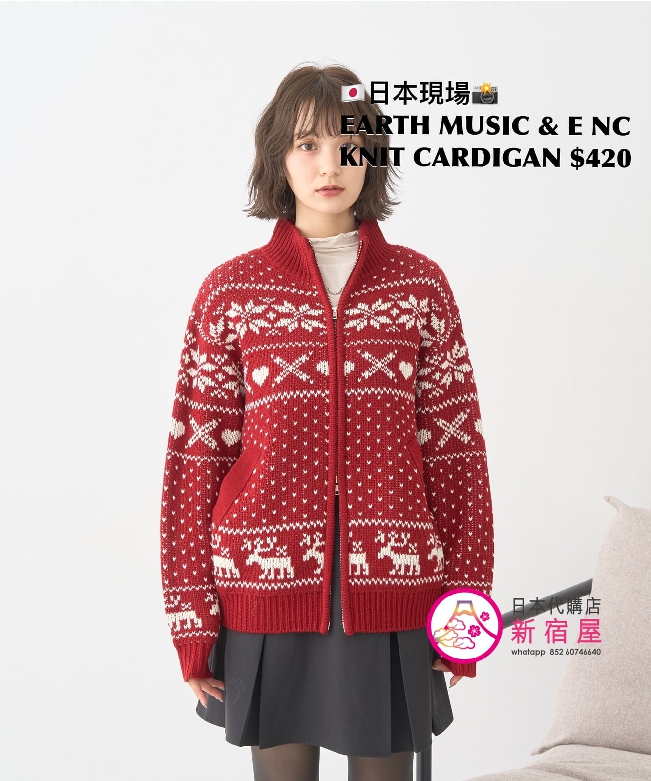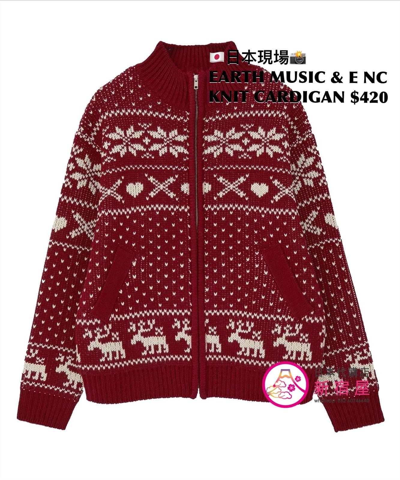 EARTH MUSIC & ECOLOGY NORDIC COWICHAN KNIT CARDIGAN FREE SIZE,IVORY/ RED,$420 👚參考尺寸 FREE SIZE: 身幅 55 著丈 62cm