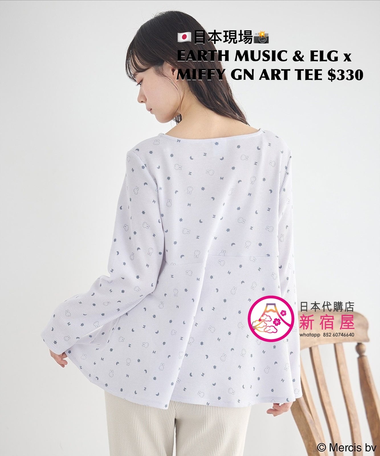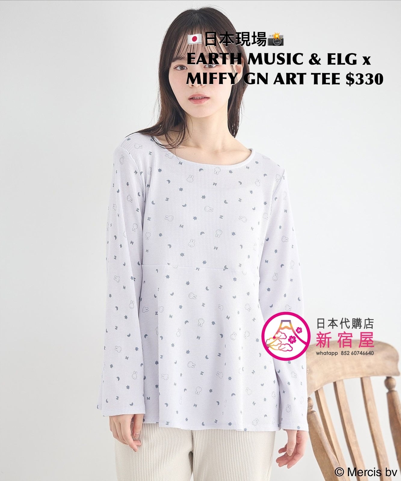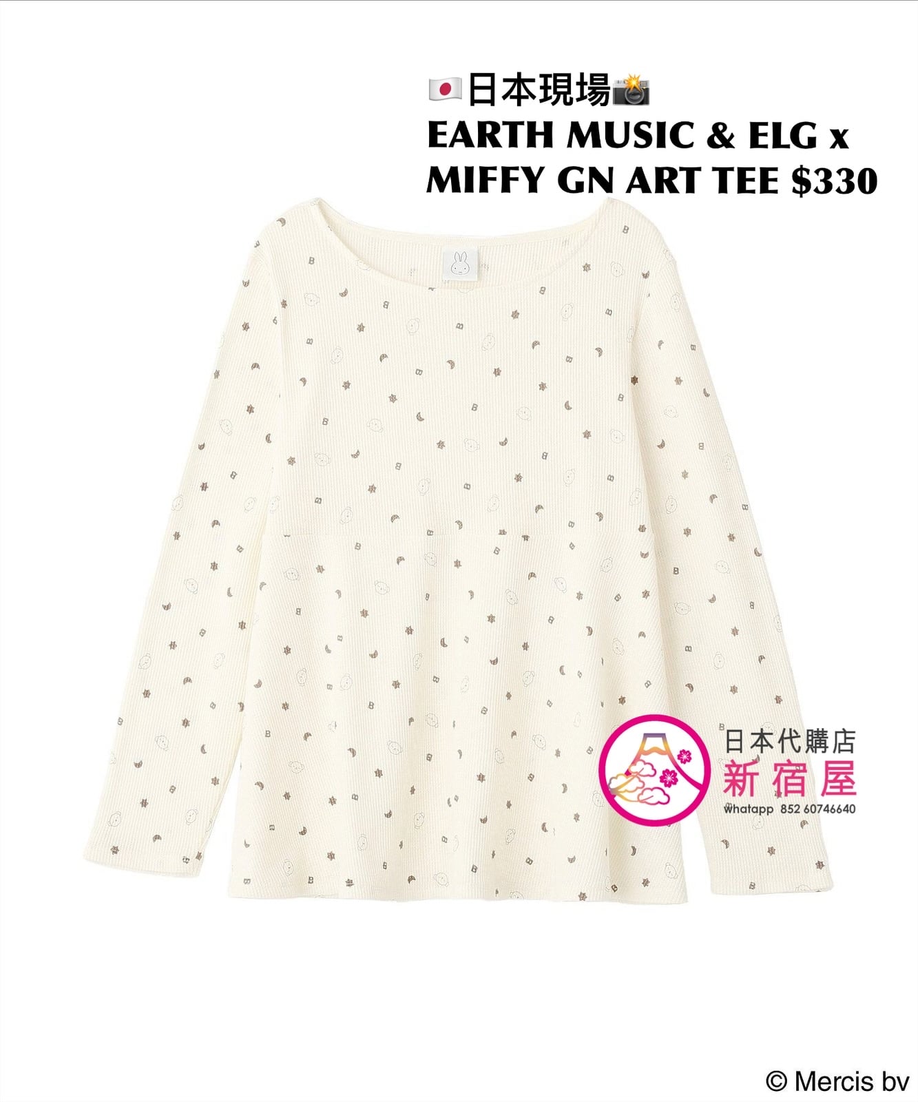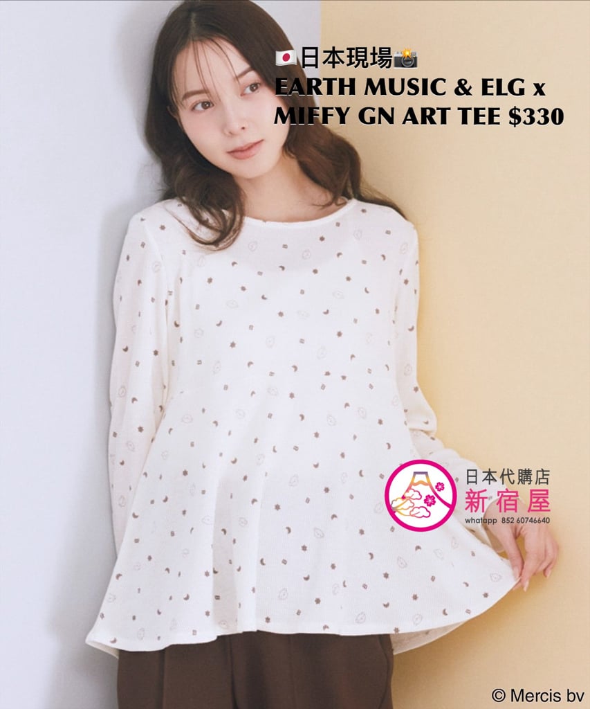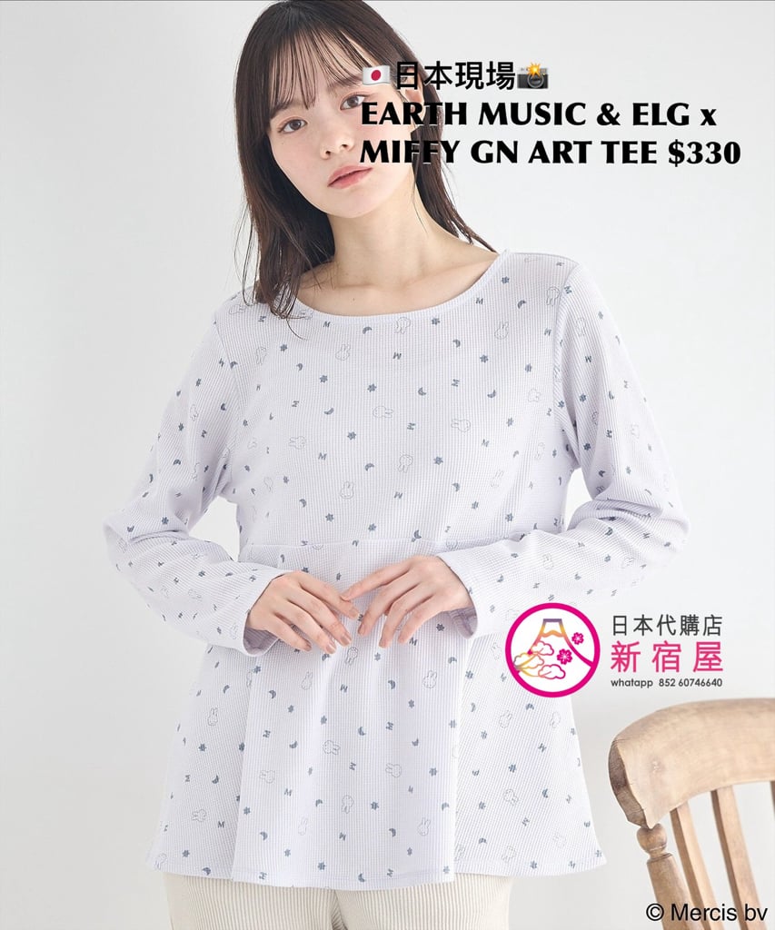 EARTH MUSIC & ECOLOGY x MIFFY GOOD NIGHT ART T-SHIRT FREE SIZE,BEIGE/ BLUE,$330 👚參考尺寸 FREE SIZE: 身幅 50 著丈 63.5cm