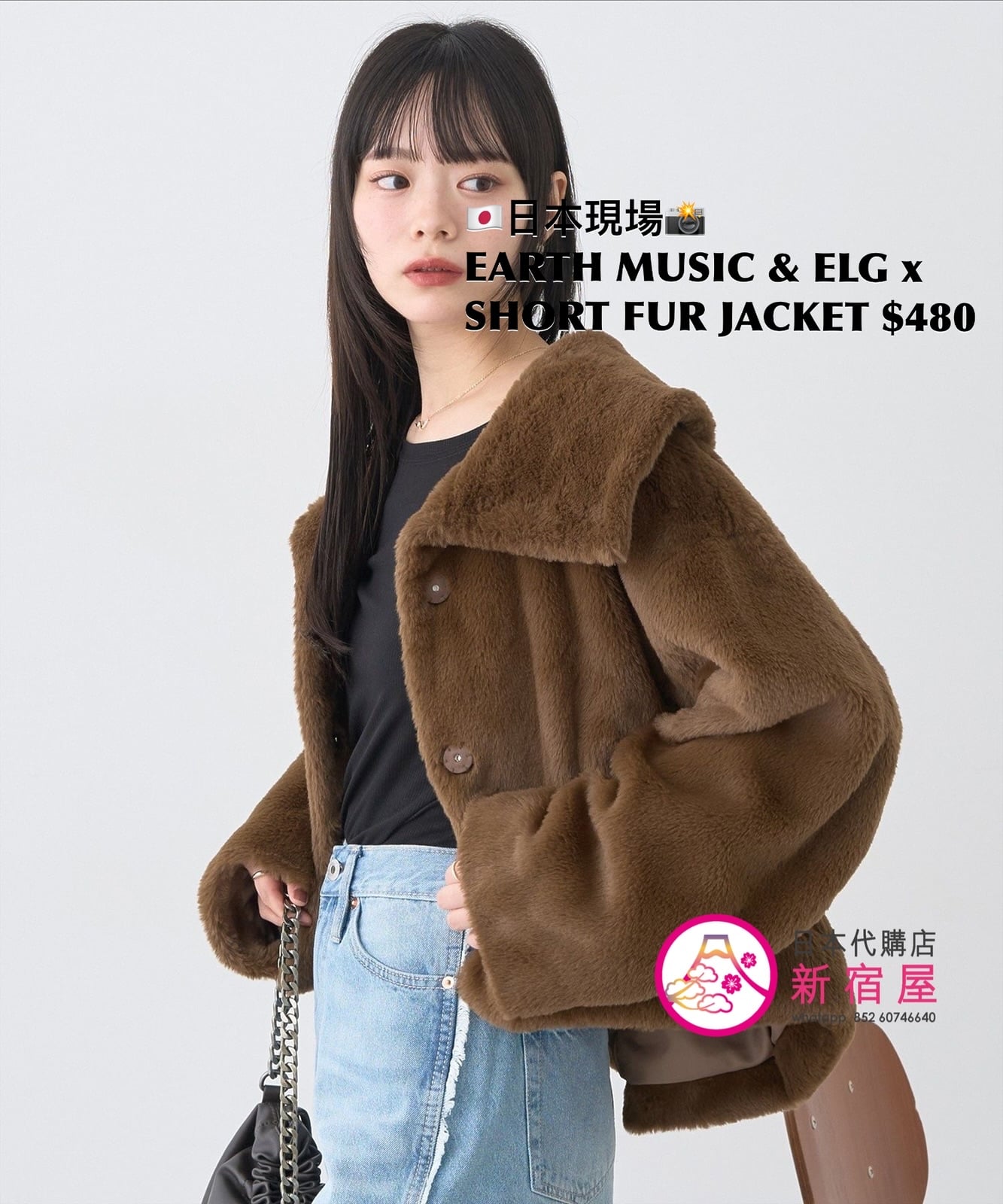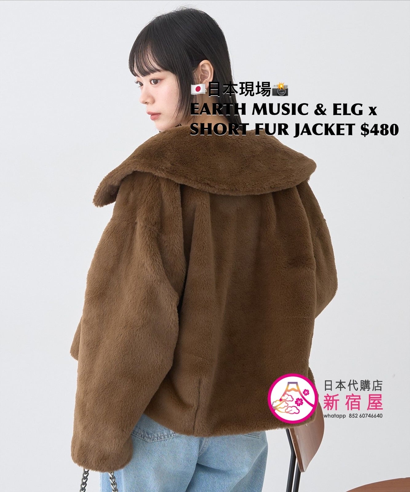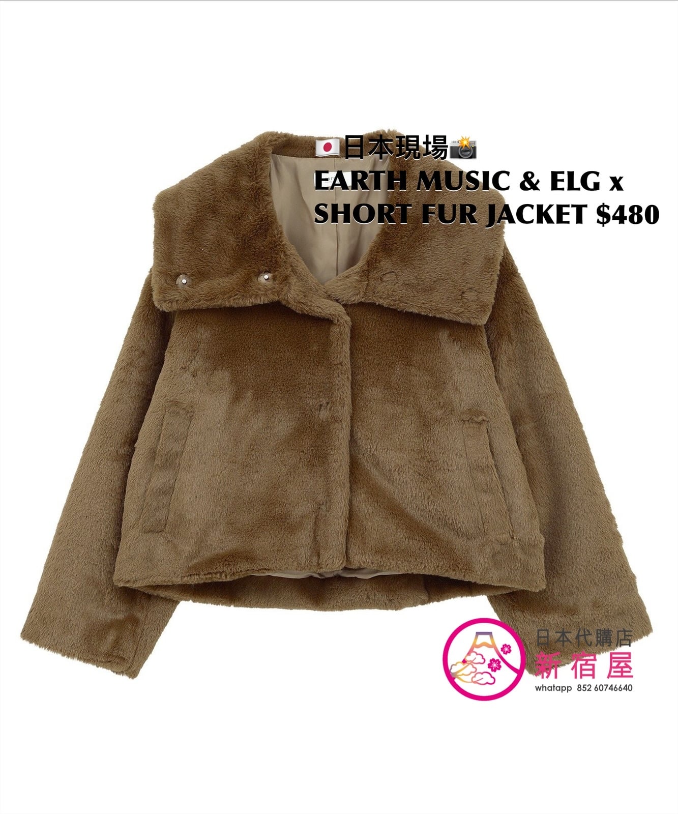 EARTH MUSIC & ECOLOGY x SHORT FUR JACKET FREE SIZE,BROWN/ CREAM/ MOCA,$480 👚參考尺寸 FREE SIZE: 身幅 58 著丈 56cm