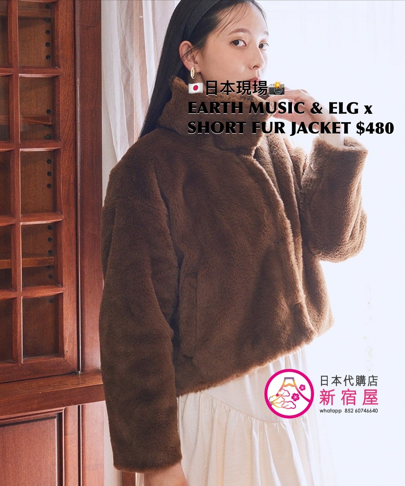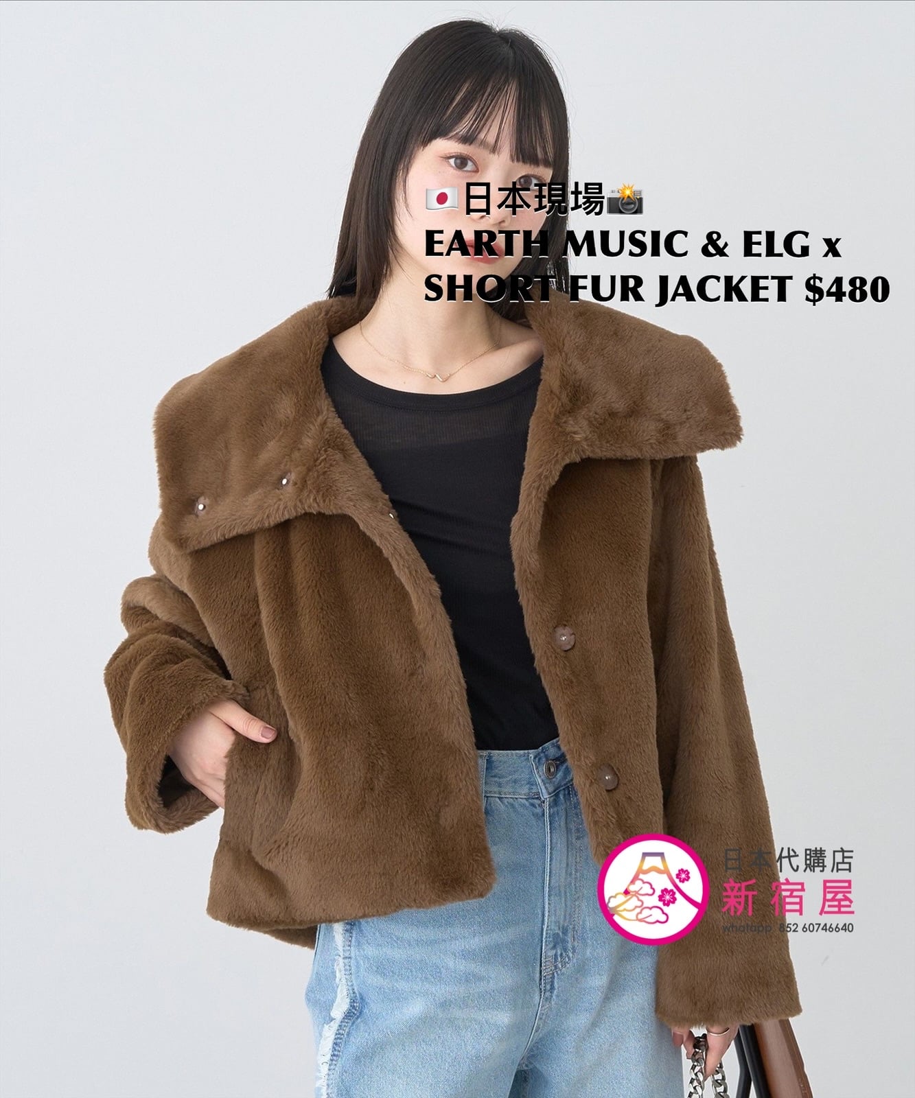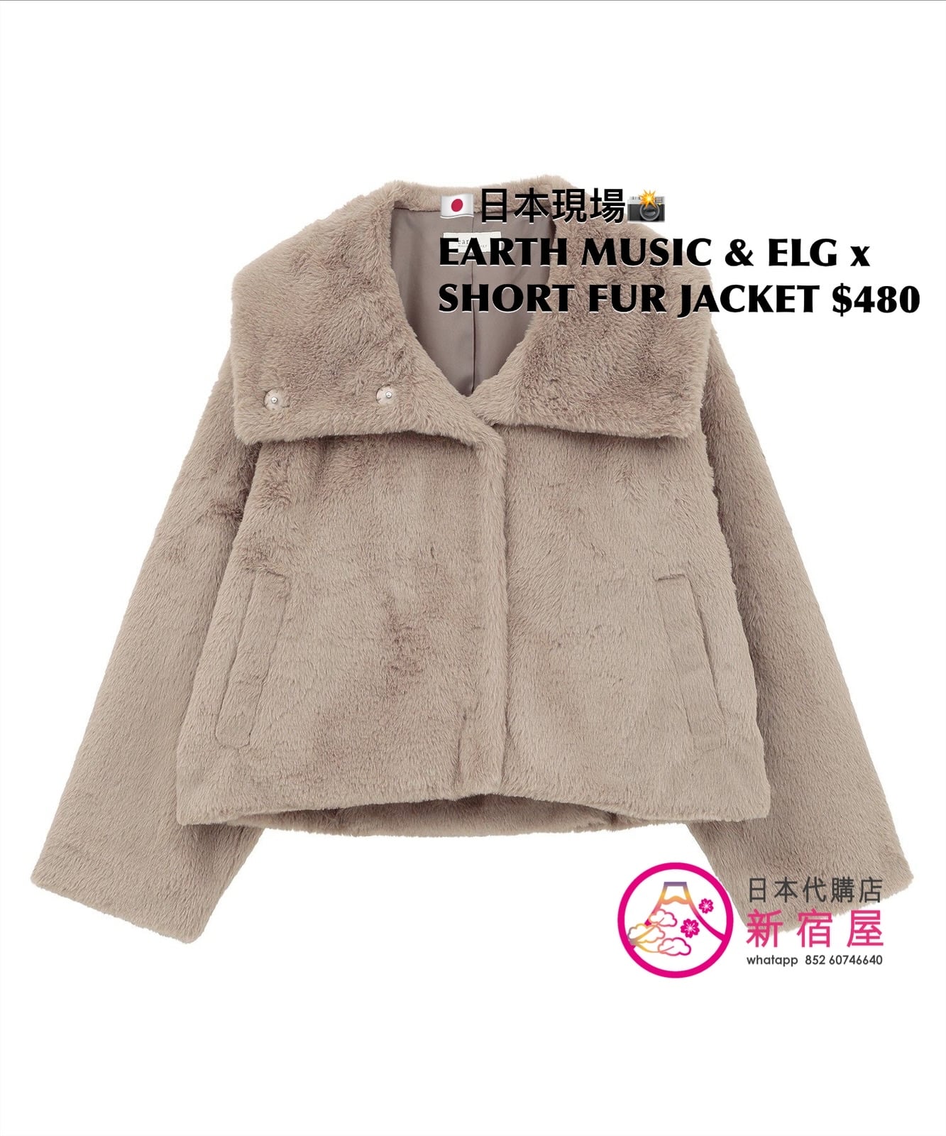 EARTH MUSIC & ECOLOGY x SHORT FUR JACKET FREE SIZE,BROWN/ CREAM/ MOCA,$480 👚參考尺寸 FREE SIZE: 身幅 58 著丈 56cm