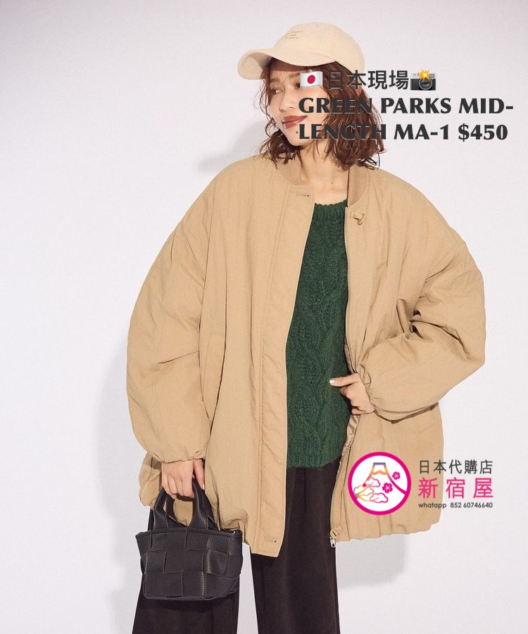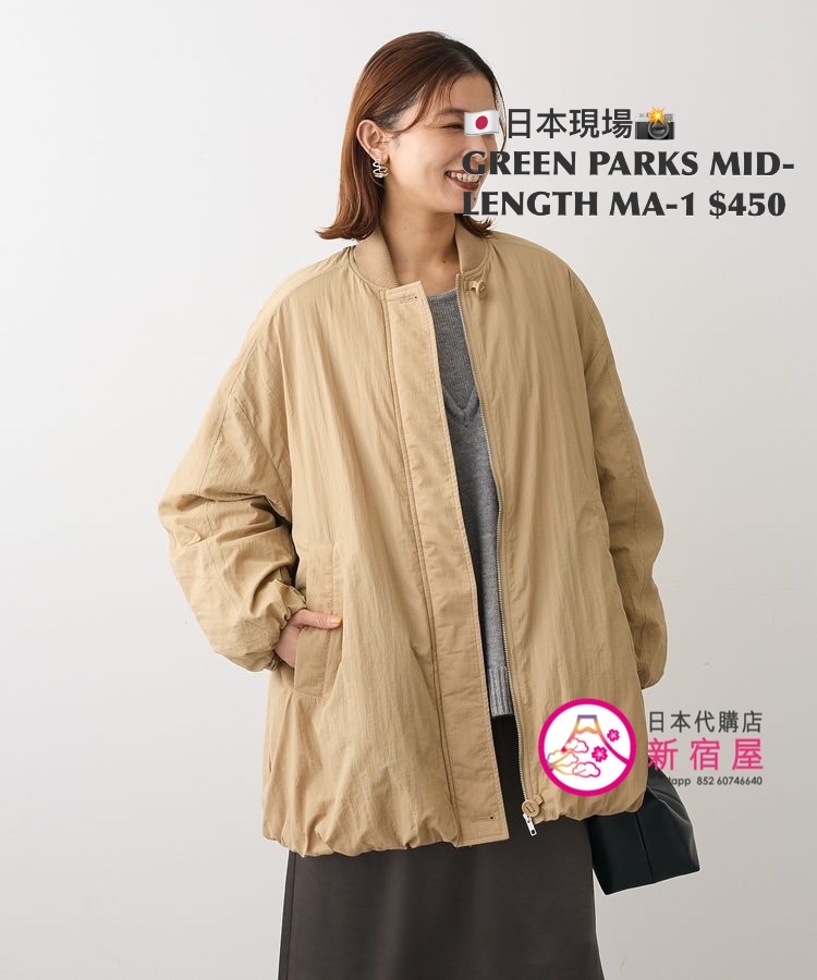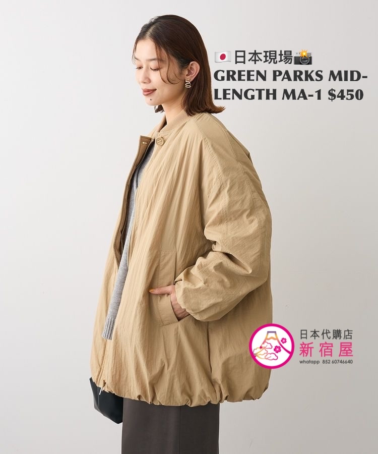 GREEN PARKS MID-LENGTH MA-1 FREE SIZE,KHAKI/ BLACK/ BEIGE,$450 👚參考尺寸 FREE SIZE: 身幅 71 著丈 81cm