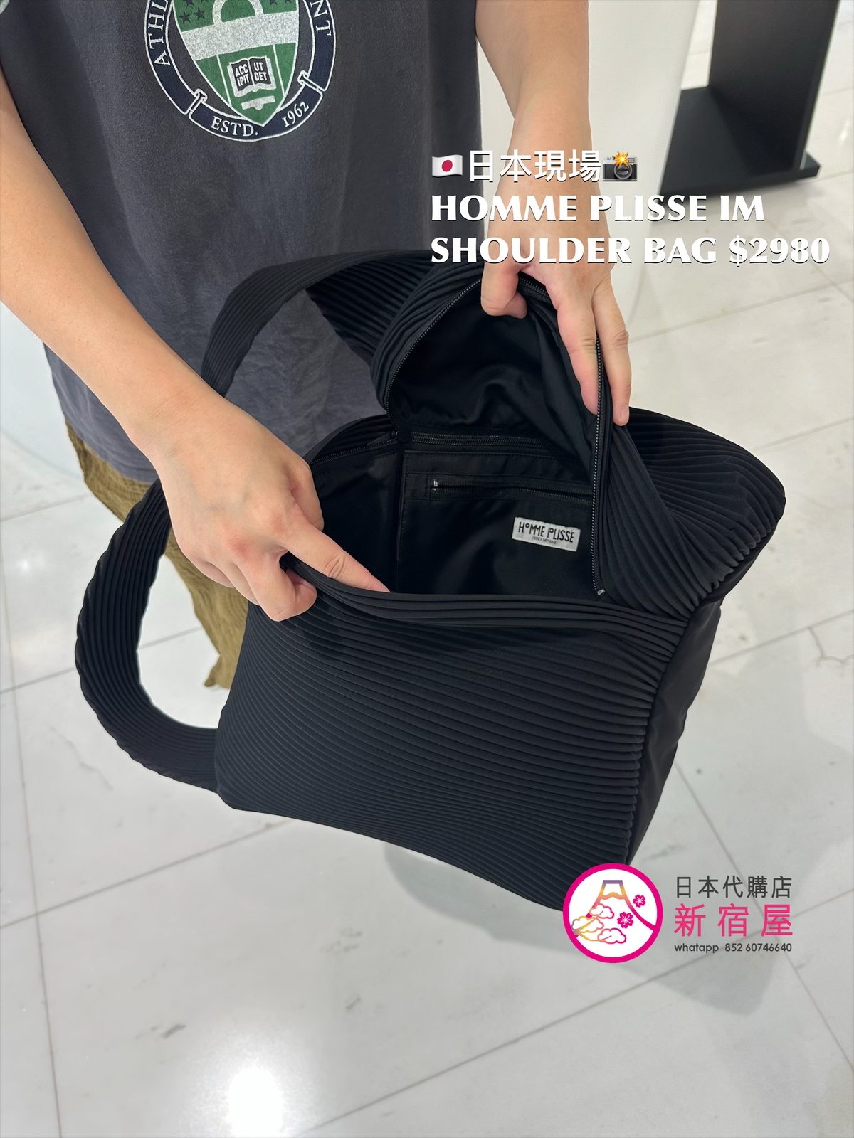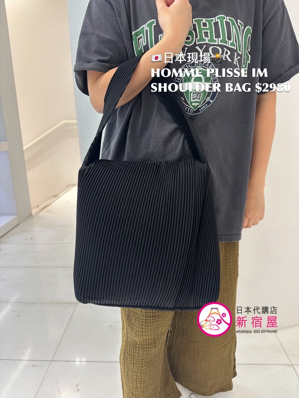 HOMME PLISSE ISSEY MIYAKE SHOULDER BAG 30.5x10x32cm,BLACK,$2980
