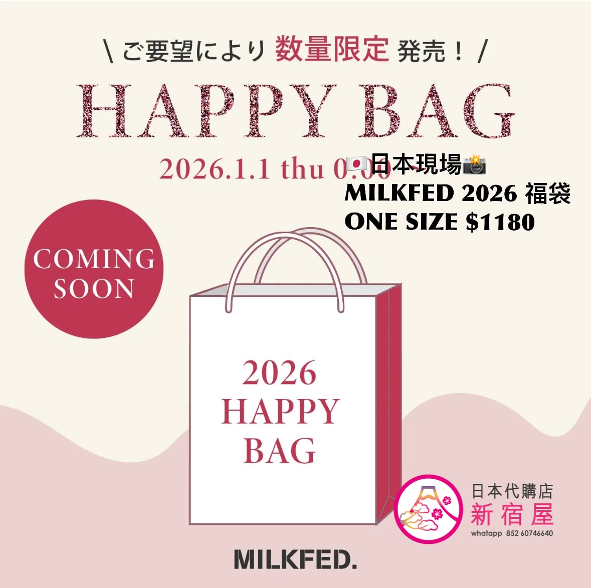 MILKFED 福袋 HAPPY BAG 2026 ONE SIZE,JACKET x1/ TOP x1/ SWEATSHIRT x1/ BOTTOMS x1/ BAG x1,5 ITEMS,$1180