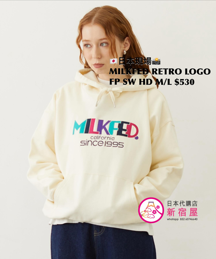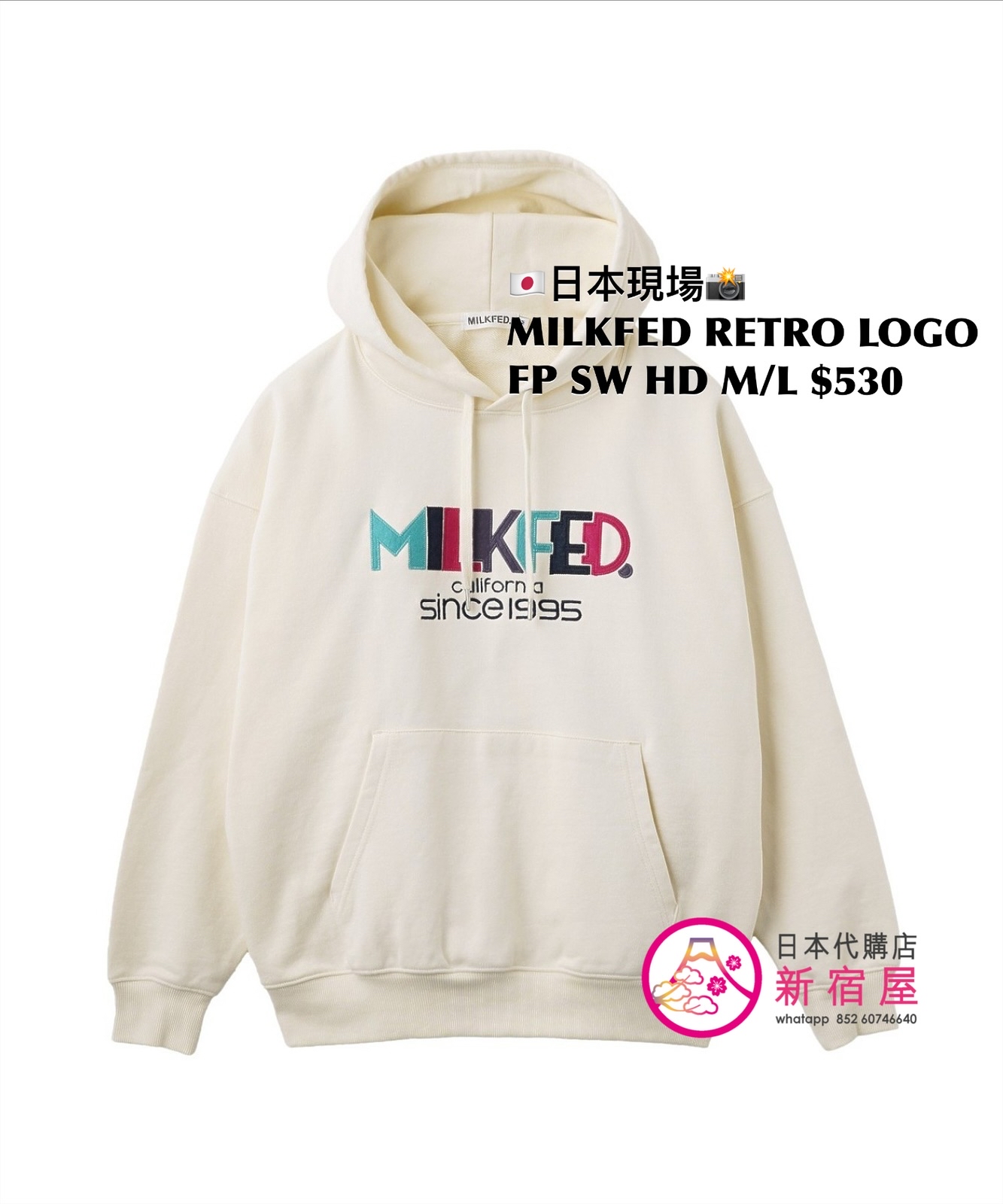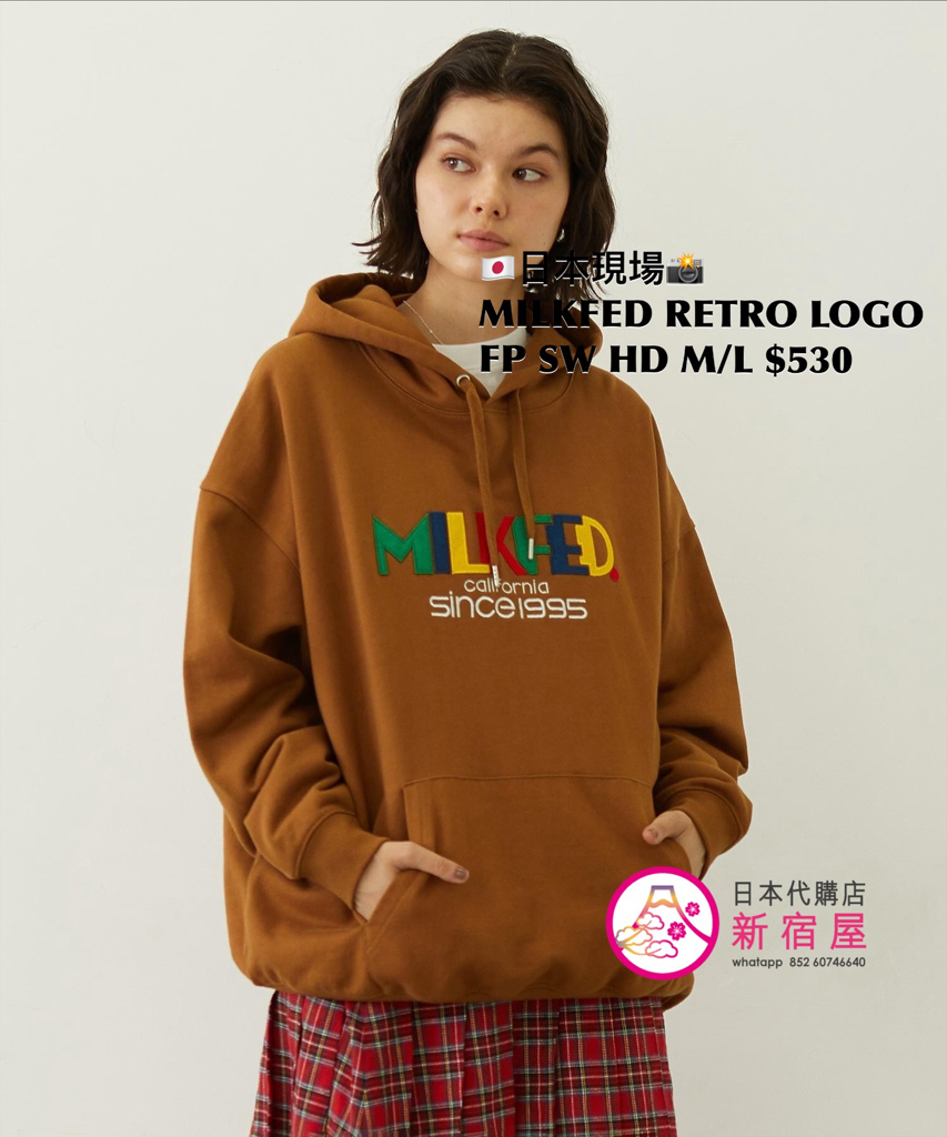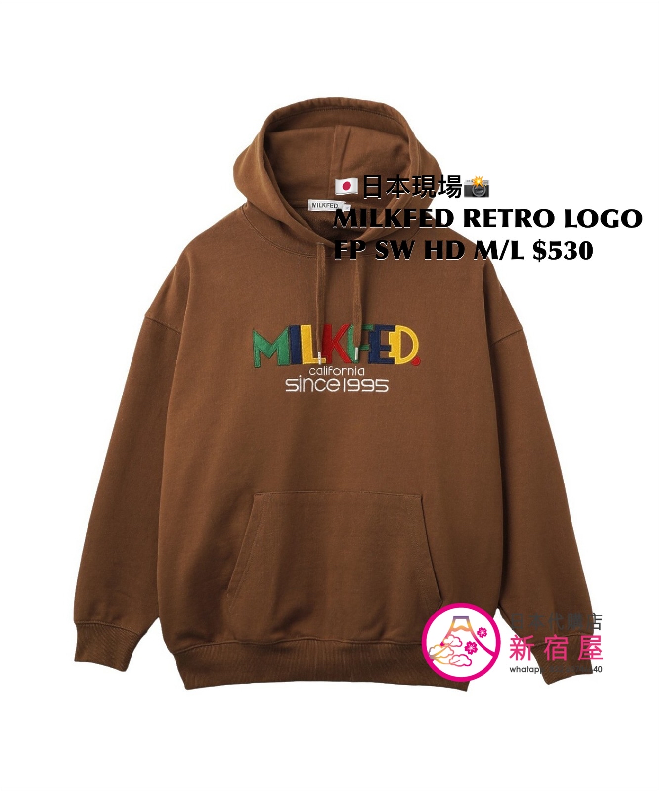 MILKFED RETRO LOGO FELT PATCH SWEAT HOODIE SIZE M/L,NAVY/ OFF WHITE/ BROWN,$530 👚參考尺寸 SIZE M: 身幅 66 著丈 62cm SIZE L: 身幅 74 著丈 68cm