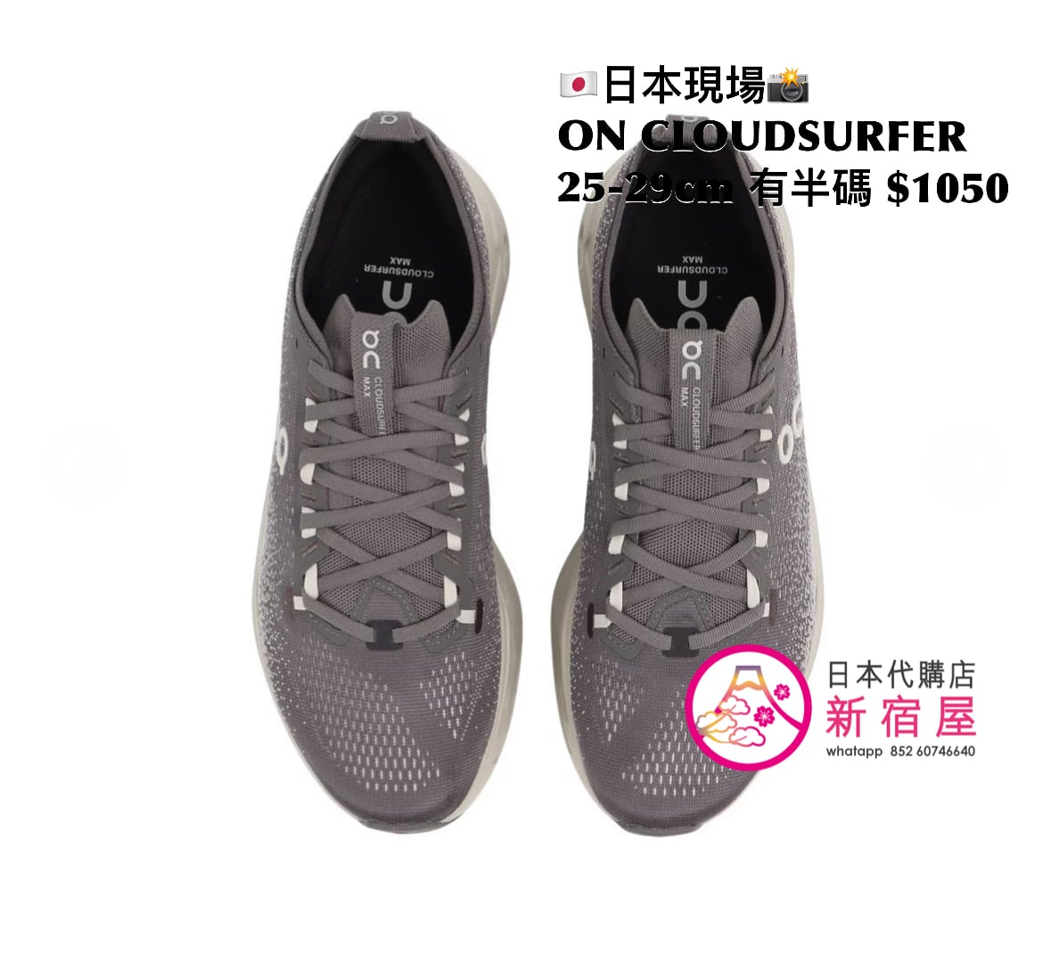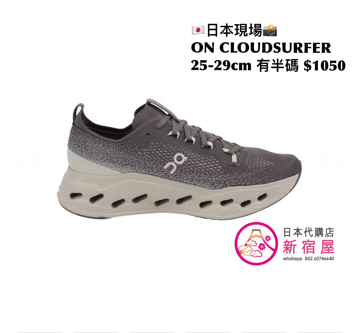 ON CLOUDSURFER 25-29cm,有半碼,$1050
