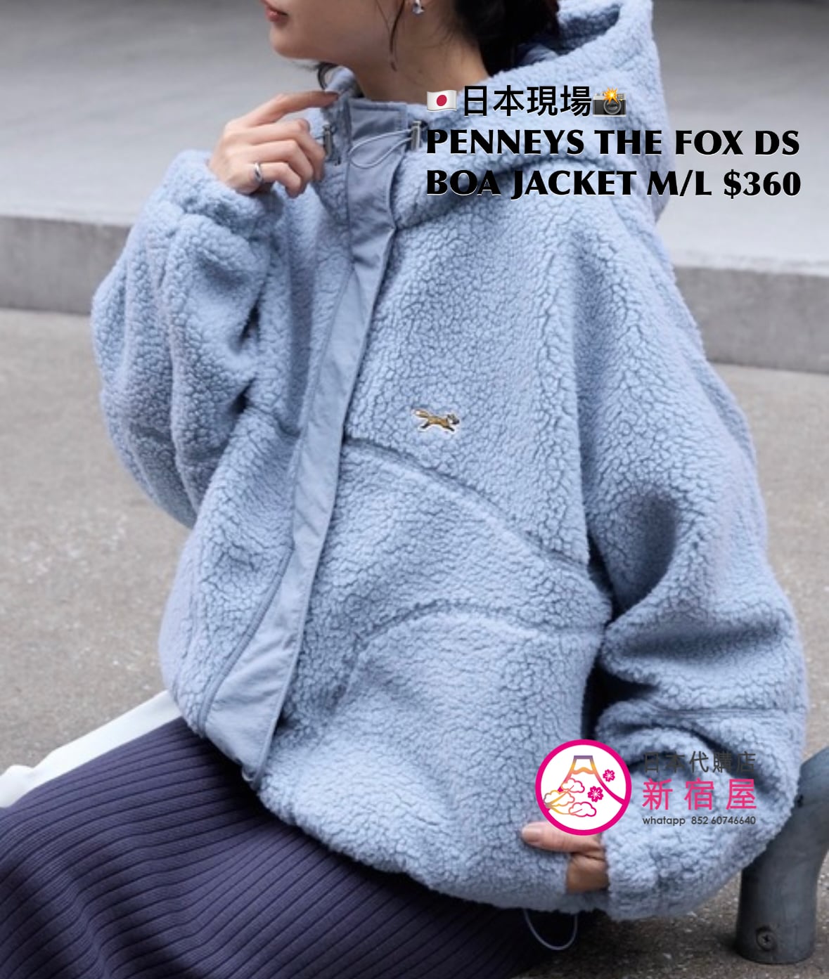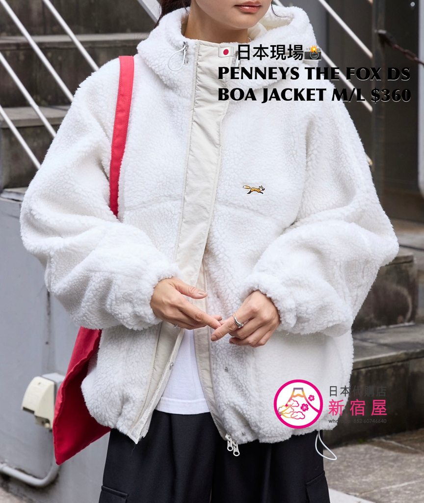 PENNYS THE FOX DRAWSTRING BOA JACKET SIZE M/L,LIGHT BLUE/ IVORY/ BLACK/ MOCA,$360 👚參考尺寸 SIZE M: 身幅 65.5 著丈 66cm SIZE L: 身幅 67.5 著丈 68cm