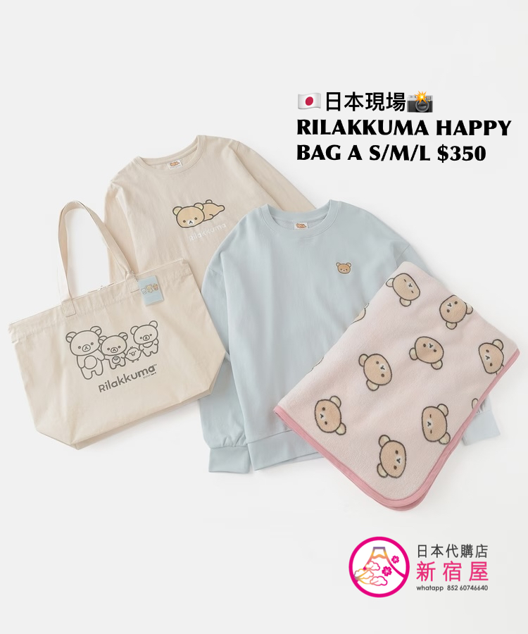 RILAKKUMA 2026 NEW YEAR LUCKY BAG A SIZE S/M/L,5 ITEMS,商品如圖,$350