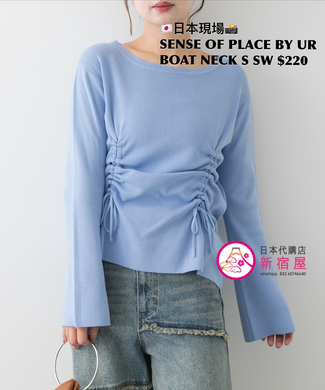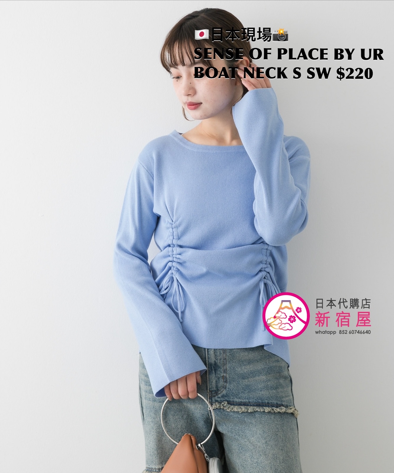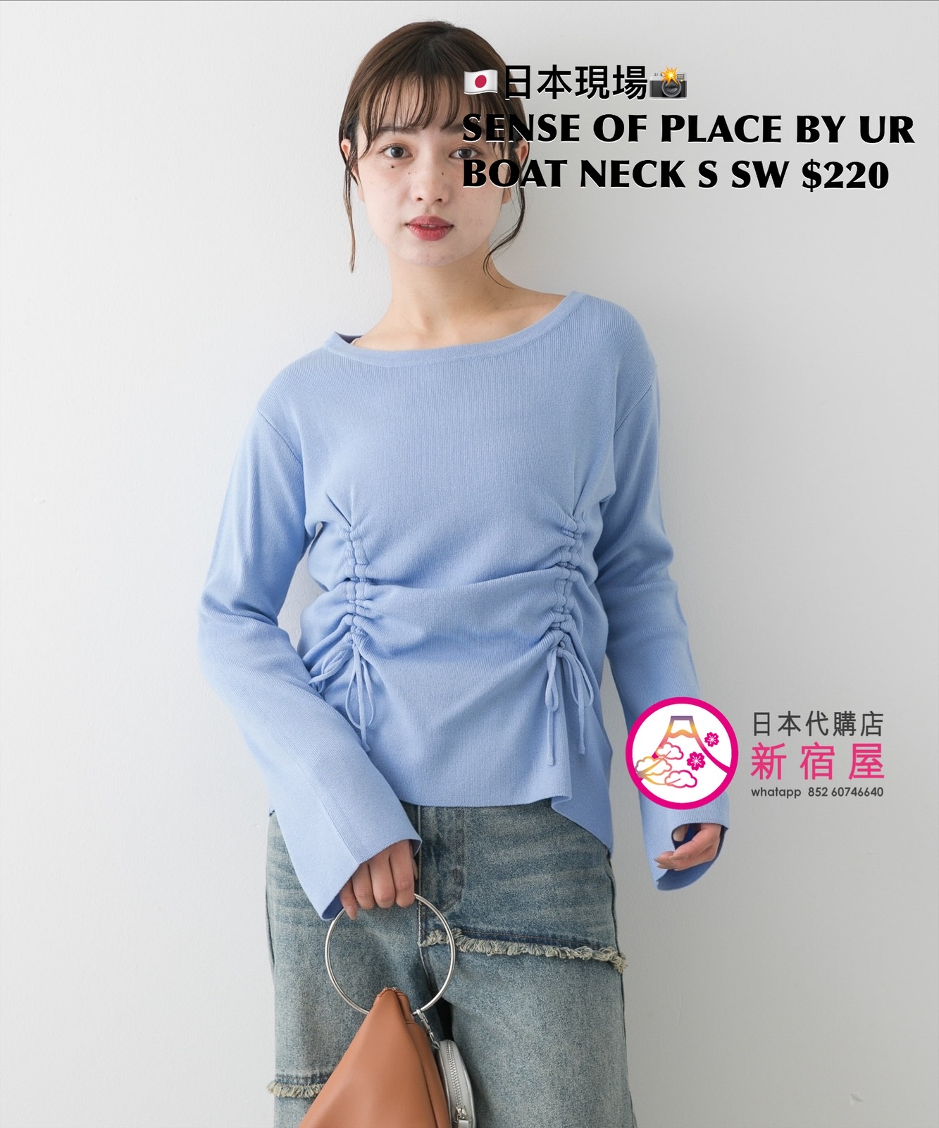 SENSE OF PLACE BY URBAN RESEARCH BOAT NECK SHIRRED SWEATER ONE SIZE,LIGHT BLUE/ IVORY/ NAVY,$220 👚參考尺寸 ONE SIZE: 身幅 46 著丈 54cm