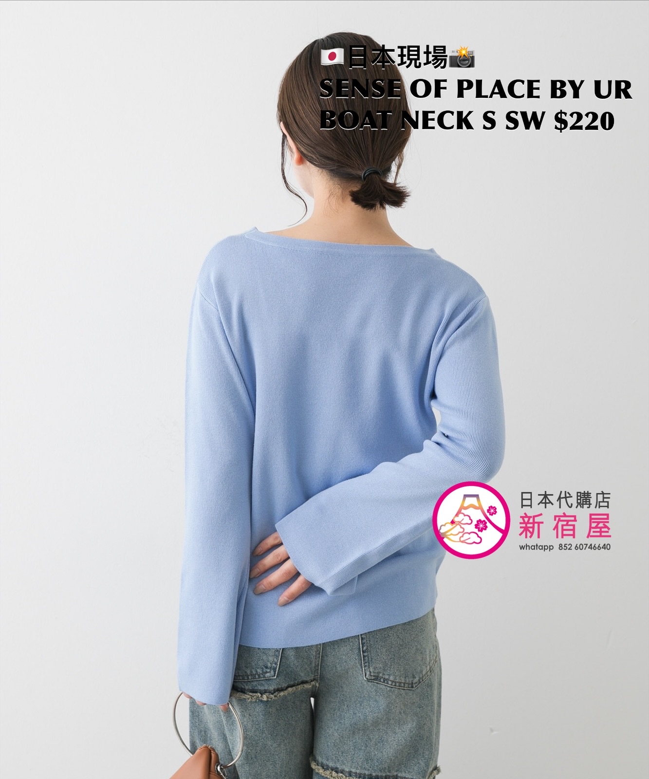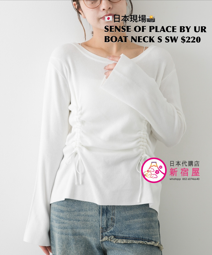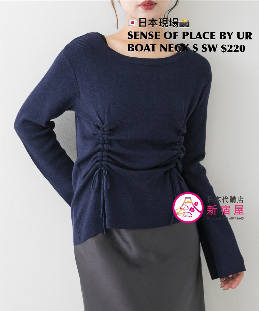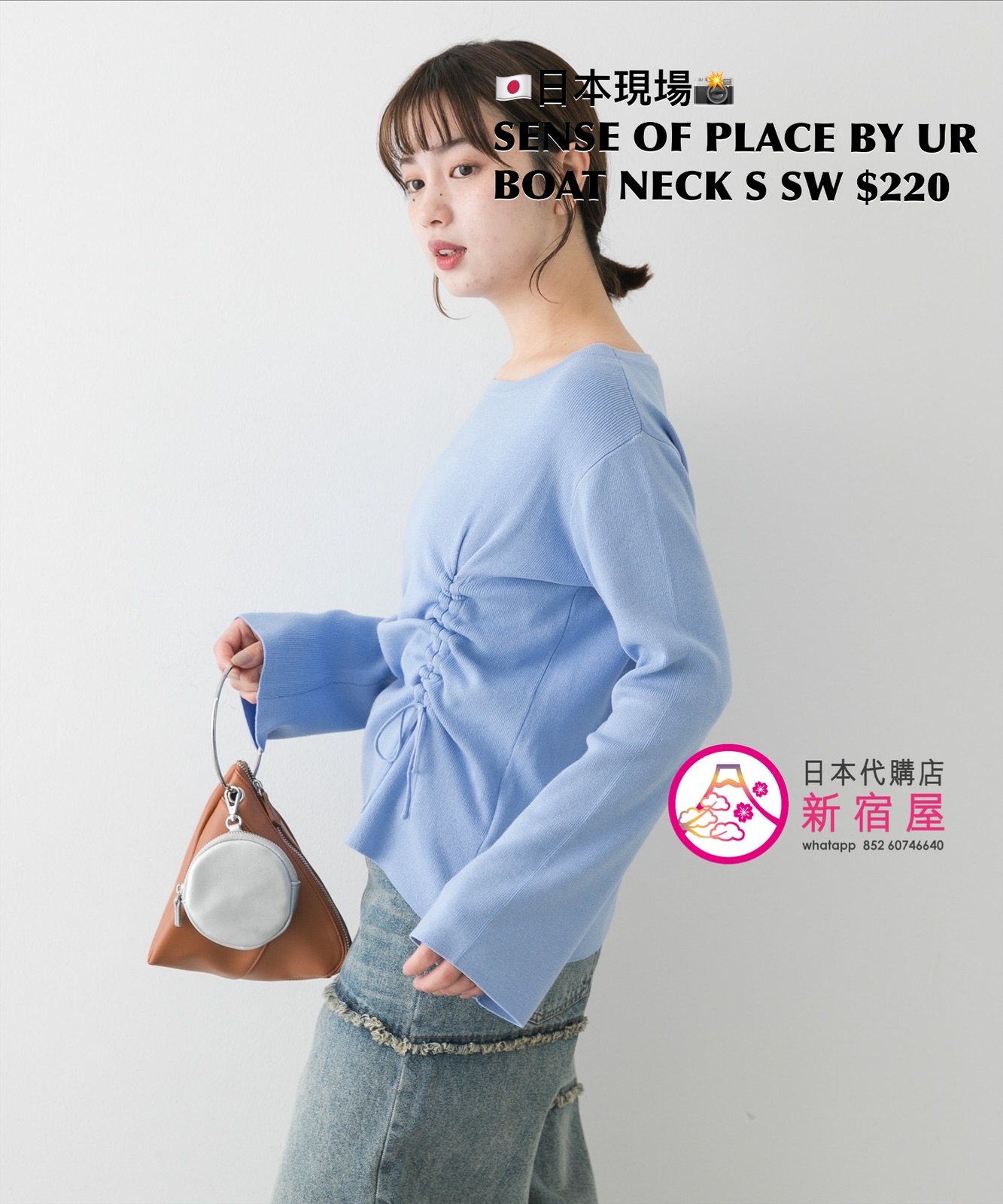SENSE OF PLACE BY URBAN RESEARCH BOAT NECK SHIRRED SWEATER ONE SIZE,LIGHT BLUE/ IVORY/ NAVY,$220 👚參考尺寸 ONE SIZE: 身幅 46 著丈 54cm