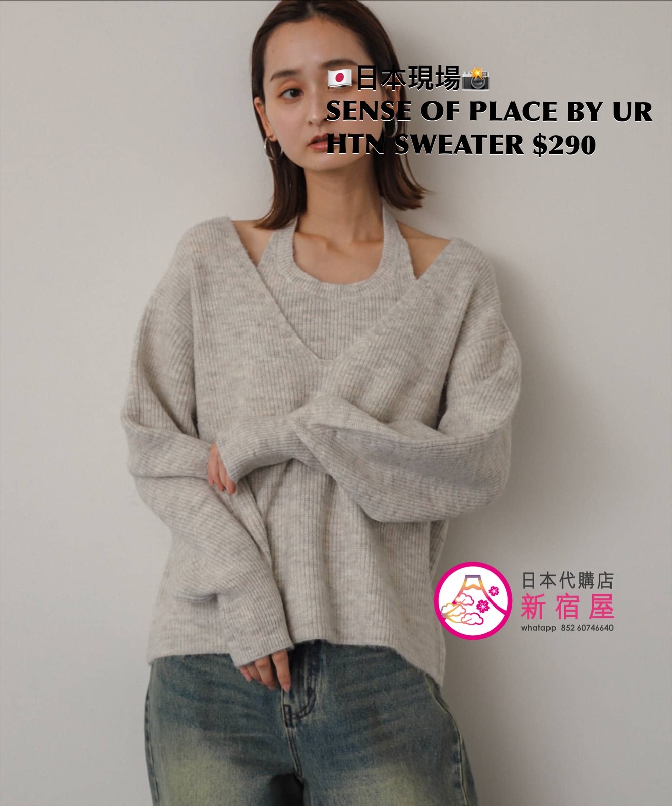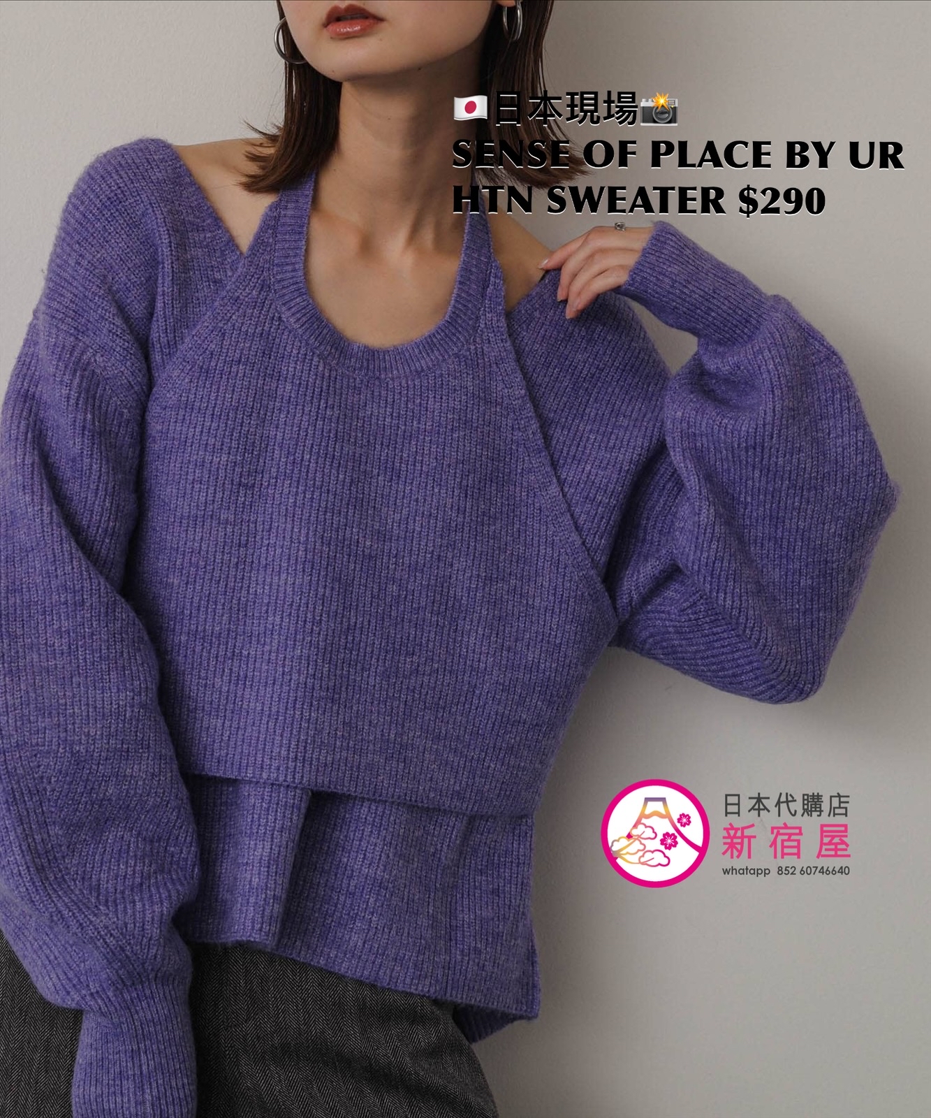 SENSE OF PLACE BY URBAN RESEARCH HALTERNECK SWEATER ONE SIZE,LIGHT GRAY/ CHARCOAL GRAY/ PURPLE,$290 👚參考尺寸 ONE SIZE: 身幅 56 總丈 58cm