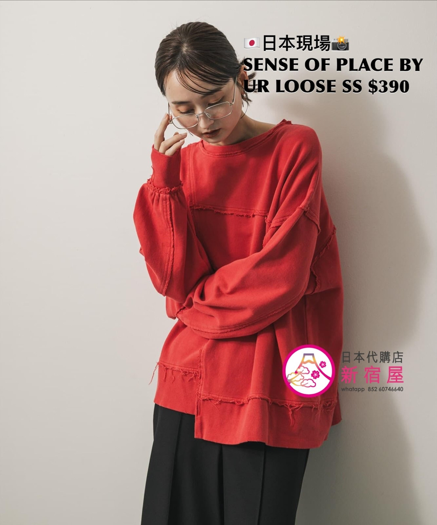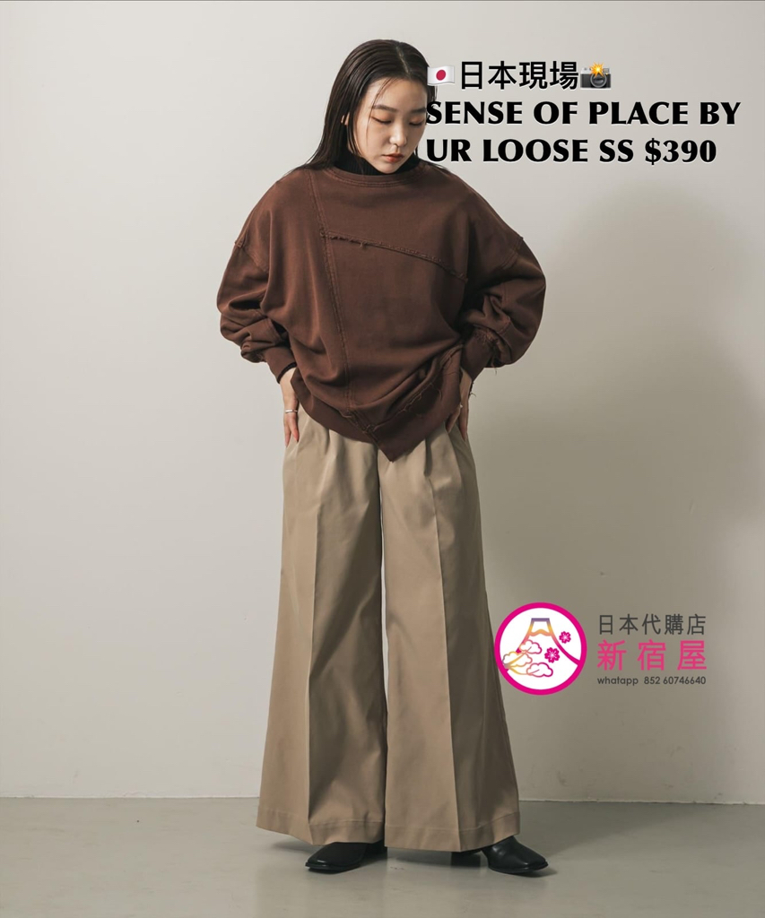 SENSE OF PLACE BY URBAN RESEARCH LOOSE SWEATSHIRT ONE SIZE,CHARCOAL GRAY/ BROWN/ RED,$390 👚參考尺寸 ONE SIZE: 身幅 64 著丈 63cm