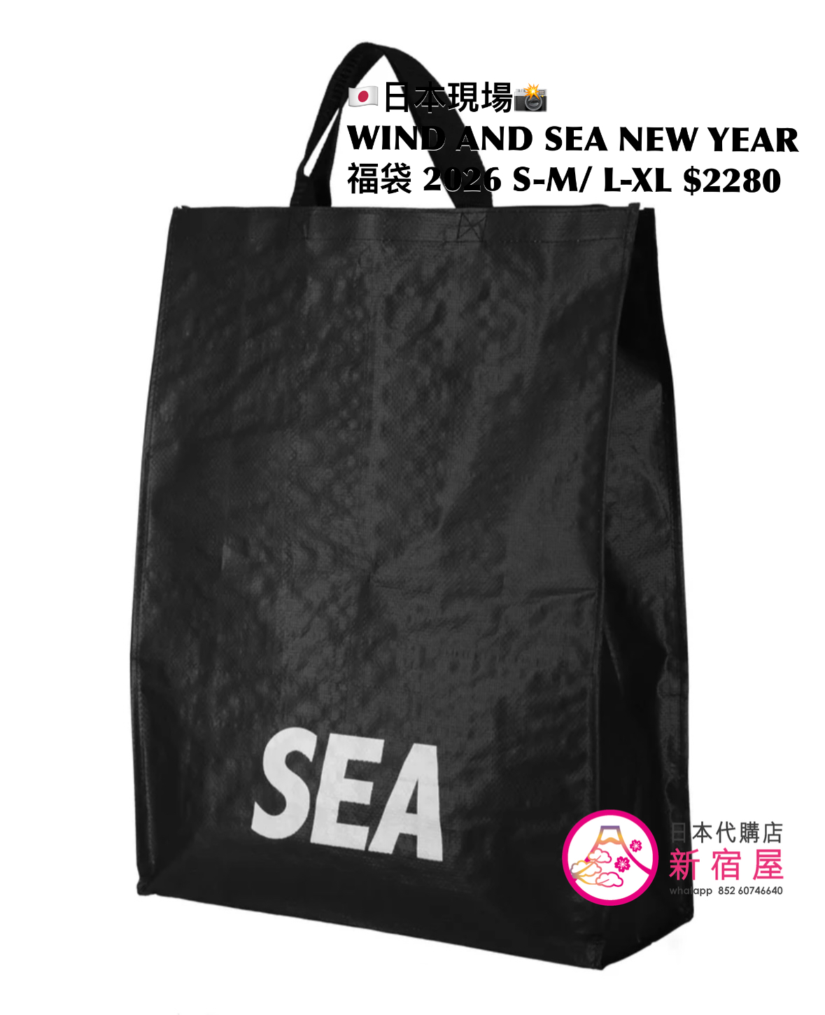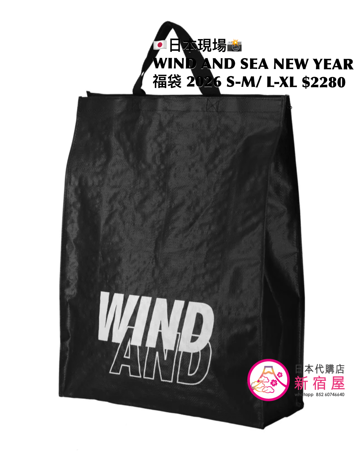 WIND AND SEA NEW YEAR LUCKY BAG 2026 SIZE S-M/ L-XL,隨機分派 5件商品,有機會包括 SWEATSHIRTS/ HOODIES/ TEES/ SHIRTS/ BOTTOMS/ HEAD WEAR/ ACCESSORIES,$2280